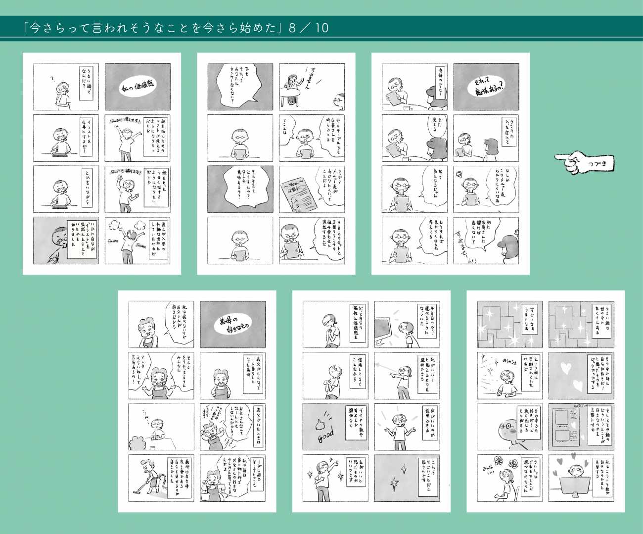 この作品は、学びを通して絵と向き合いながら、他者の価値観に揺さぶられた過去の自分と気持ちを見つめ直し、少しずつ自分らしさを取り戻していく過程を描いたコミックエッセイです。