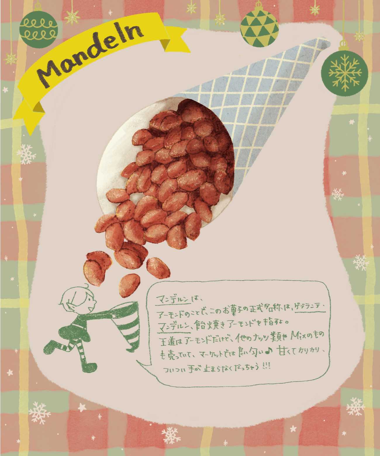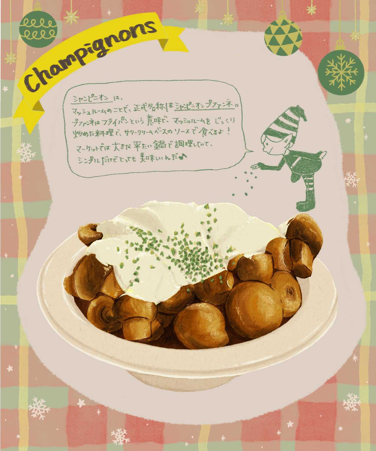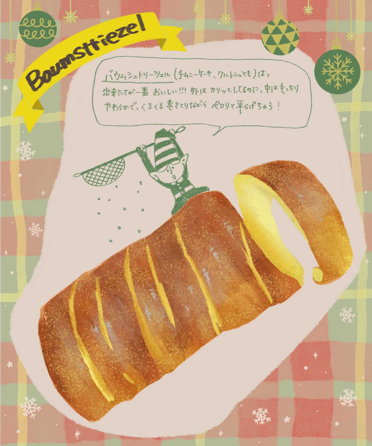 今回のイラストの制作で、クリスマスマーケットのワクワクや楽しさをより多くの人が知り、より親しみを持てるようにしていきたいと思っている。そして自身のイラスト制作において、人々がつくった「想い」の込められた食べ物たちを、イラストをつくることを通じて様々な想いを繋いでいきたいと思う。その食べ物を作った人の想いを始め、伝統料理を伝えていく想い、行事を祝う想い、美味しさや楽しさの幸せを分かち合おうとする想い等を、また別の誰かへと、ゆるやかな多幸感が感じられるイラストと共に繋いでいくことが出来たら良いと思う。