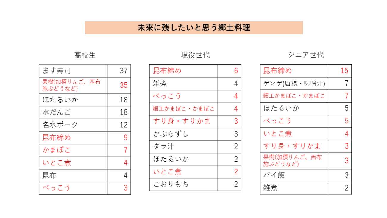 このアンケートの結果から、「おせずし」だけではない地域の郷土料理の豊かさに気づくことができました。