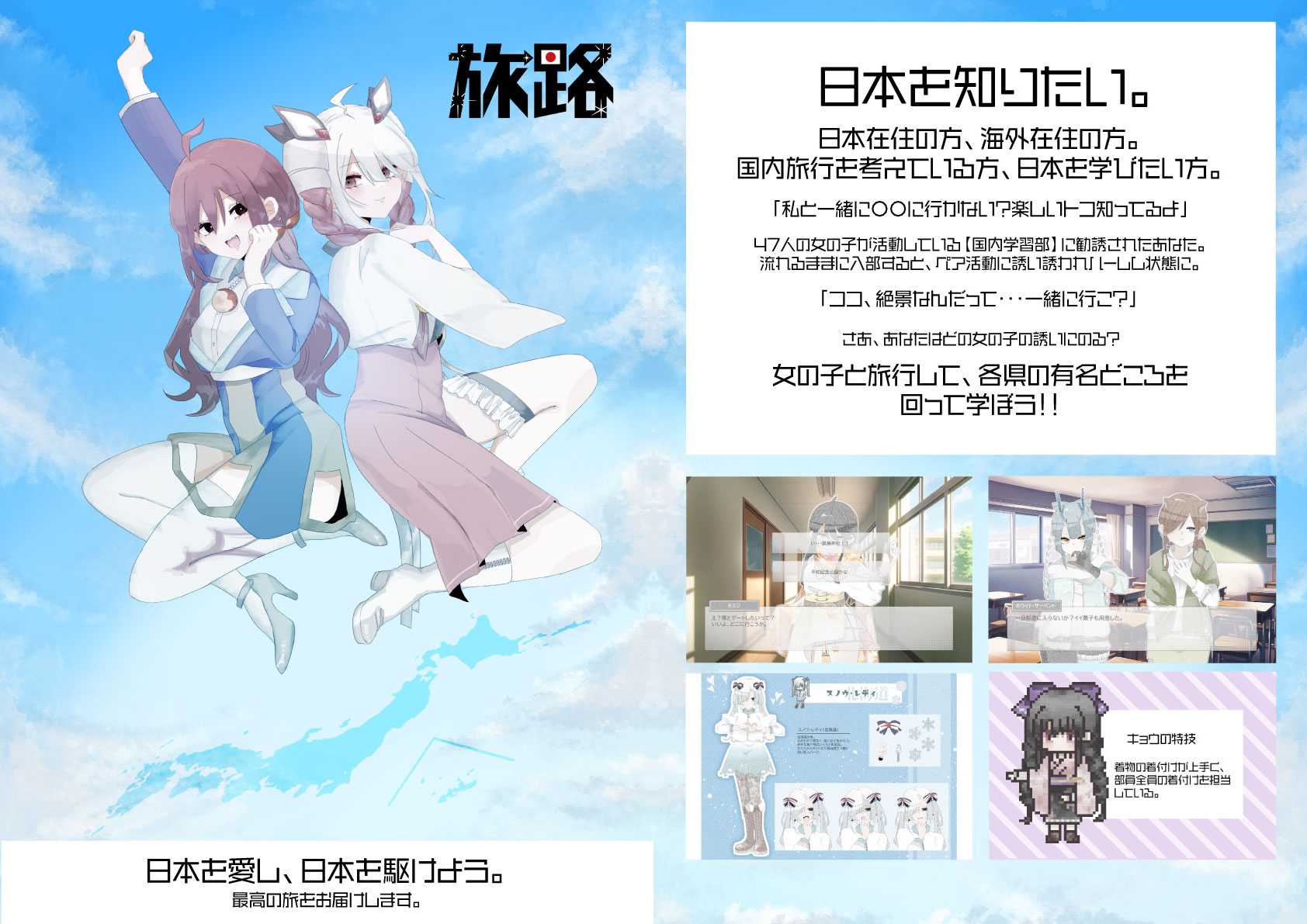 二次元ハーレムコンテンツ×47都道府県地域学習がテーマの、美少女と二人きりで旅行する青春ストーリー。