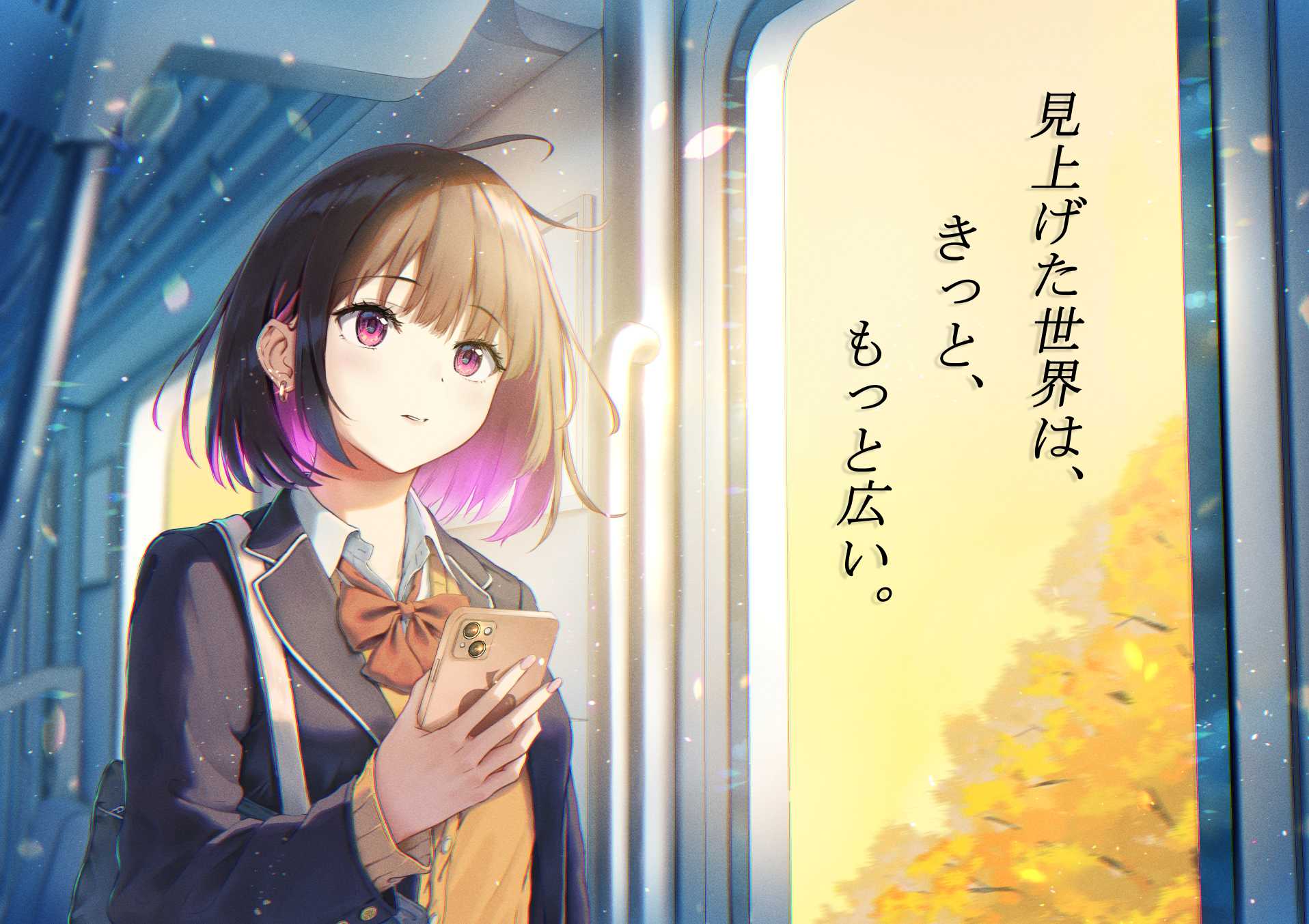 一瞬でもこのイラストを目にすることで、スマホなどの小さな画面の世界、アルゴリズムによって最適化された世界から解放され、イラストのように窓の外へ目を向けることで世界の広さ、豊かさを感じてほしいという思いで描きました。その結果、見た人の心に何か変化を与えることができたら嬉しいです。