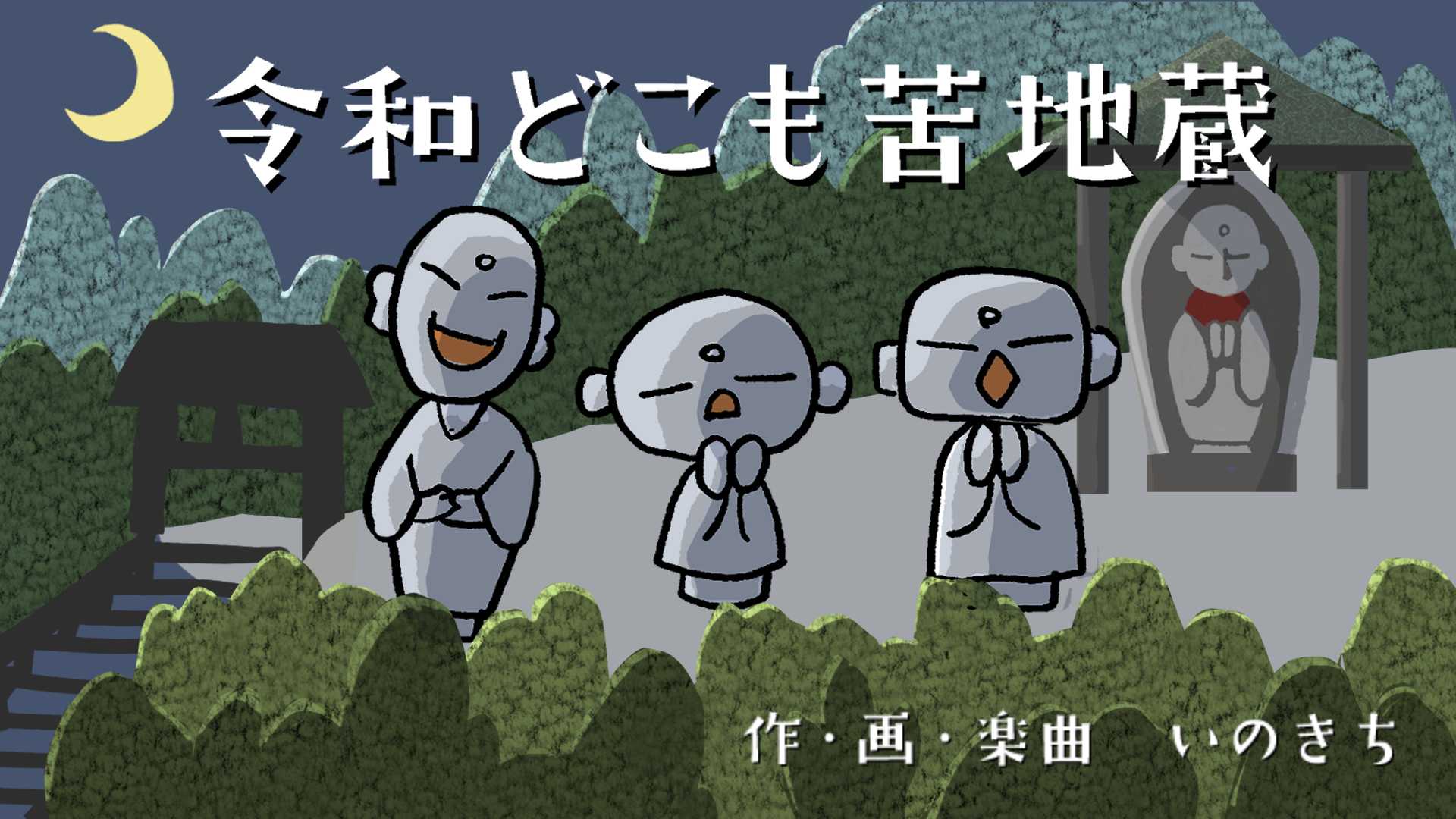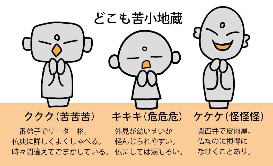 本作のメインキャラクターは三体の小地蔵。ご本尊からふわっと現れてきた謎の三体。名前もあるが、今回の作品中お互いの名を呼ぶシーンは皆無で名前が不要となった。せめて設定を紹介させて欲しい。