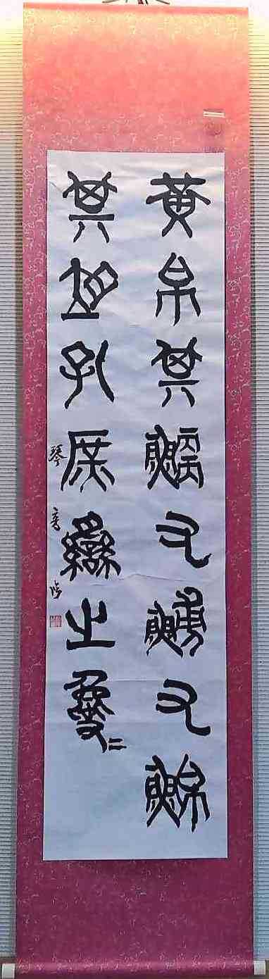 字形を追究するに当たり、美しい字を象徴する、縦長の字形に着目し、『石鼓文』と『孔子廟堂碑』を採り上げた。臨書としての再現のみならず、倣書としての発展的な表現にも挑戦した。