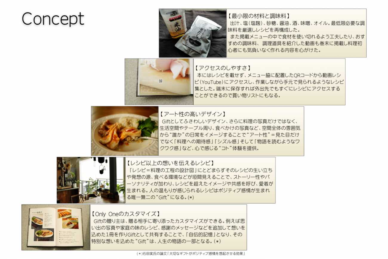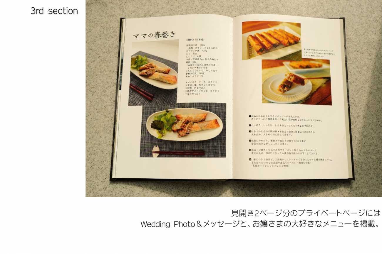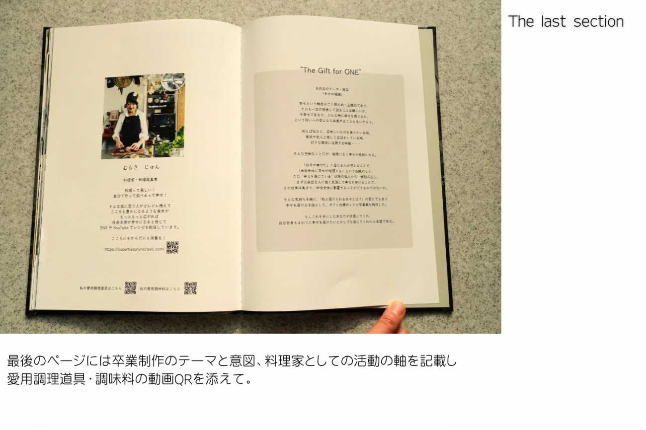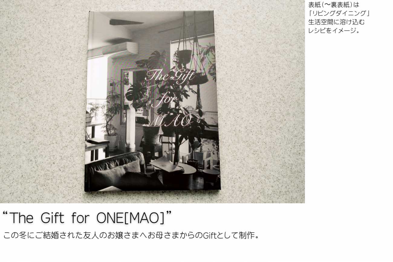 そんな気持ちを胸に、「私に届けられる幸せとは?」の答えでもあり、私にできる幸せを届ける手段として、ギフト仕様のレシピ写真集を制作した。