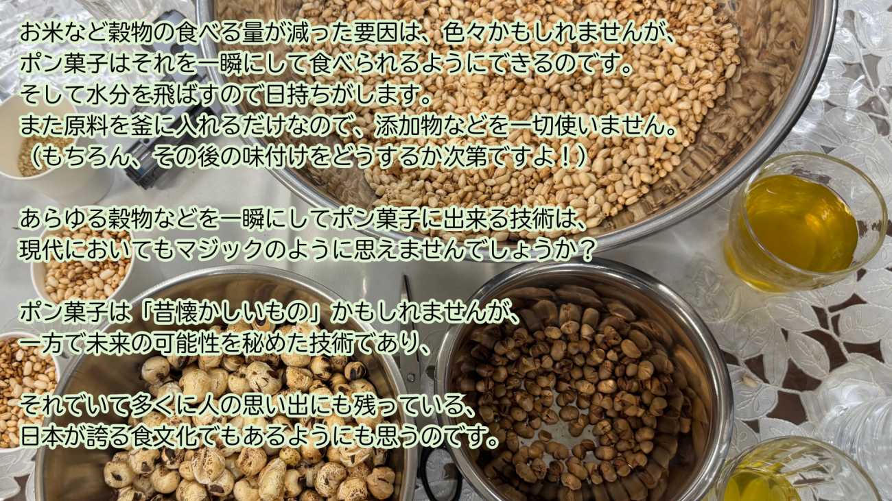 もちろん重厚長大なポン菓子の機械は、今の時代にそぐわないのかもしれませんが、