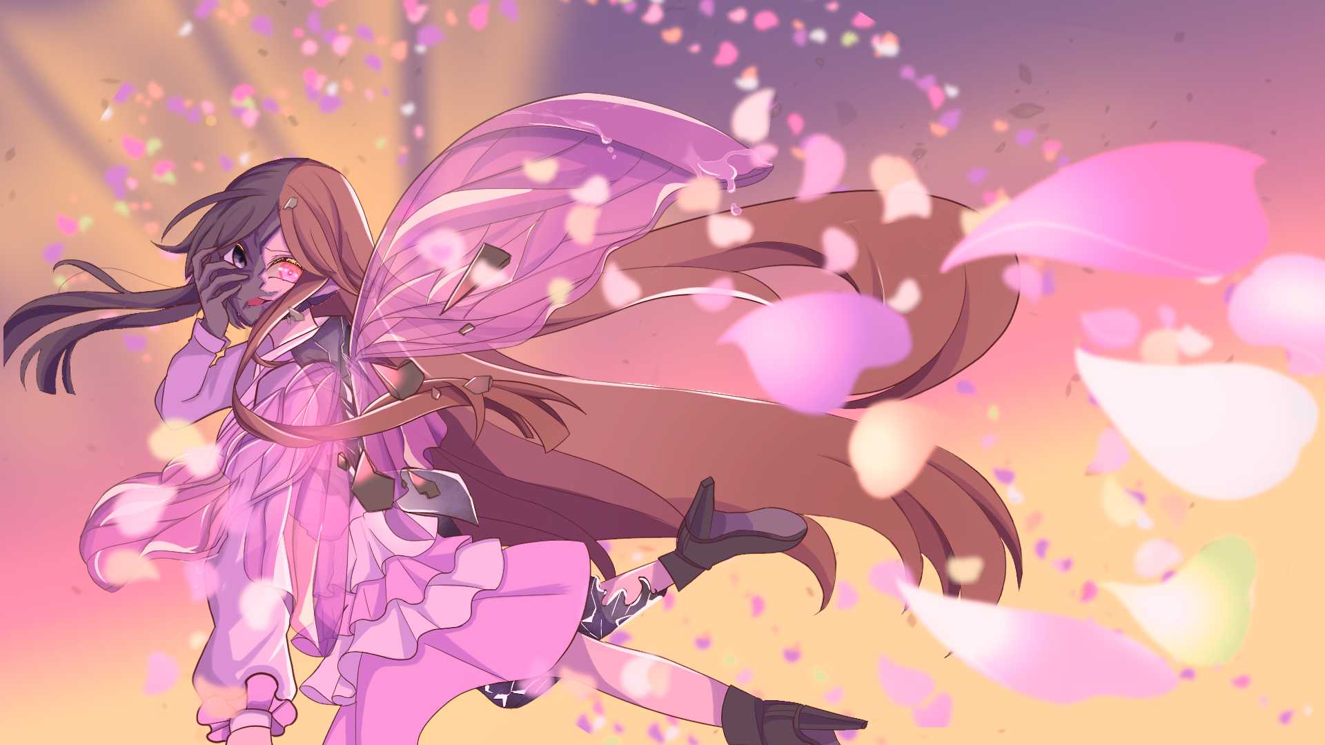■ 表現手法:モーションイラストレーション フルアニメーションではなく、一枚のイラストレーションをパーツ分けし、Adobe Premiere Proを用いて動かす「モーションイラストレーション」の手法を採用しています。 花びらや光のエフェクトを「手前・中景・奥」のレイヤーに分けて動かすことで、2Dイラストでありながら奥行きのある空間表現(パララックス効果)を持たせ、画面から飛び出すような没入感を目指しました。