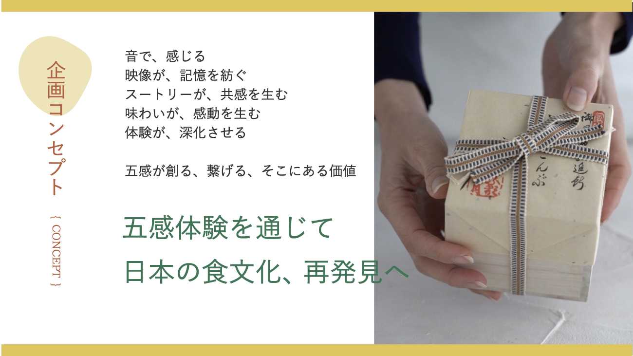 【3|コンセプト】音・映像・ストーリー、味わいという語幹体験を通じて、日本の食文化の価値の再発見と意識・行動変容につながる企画へ