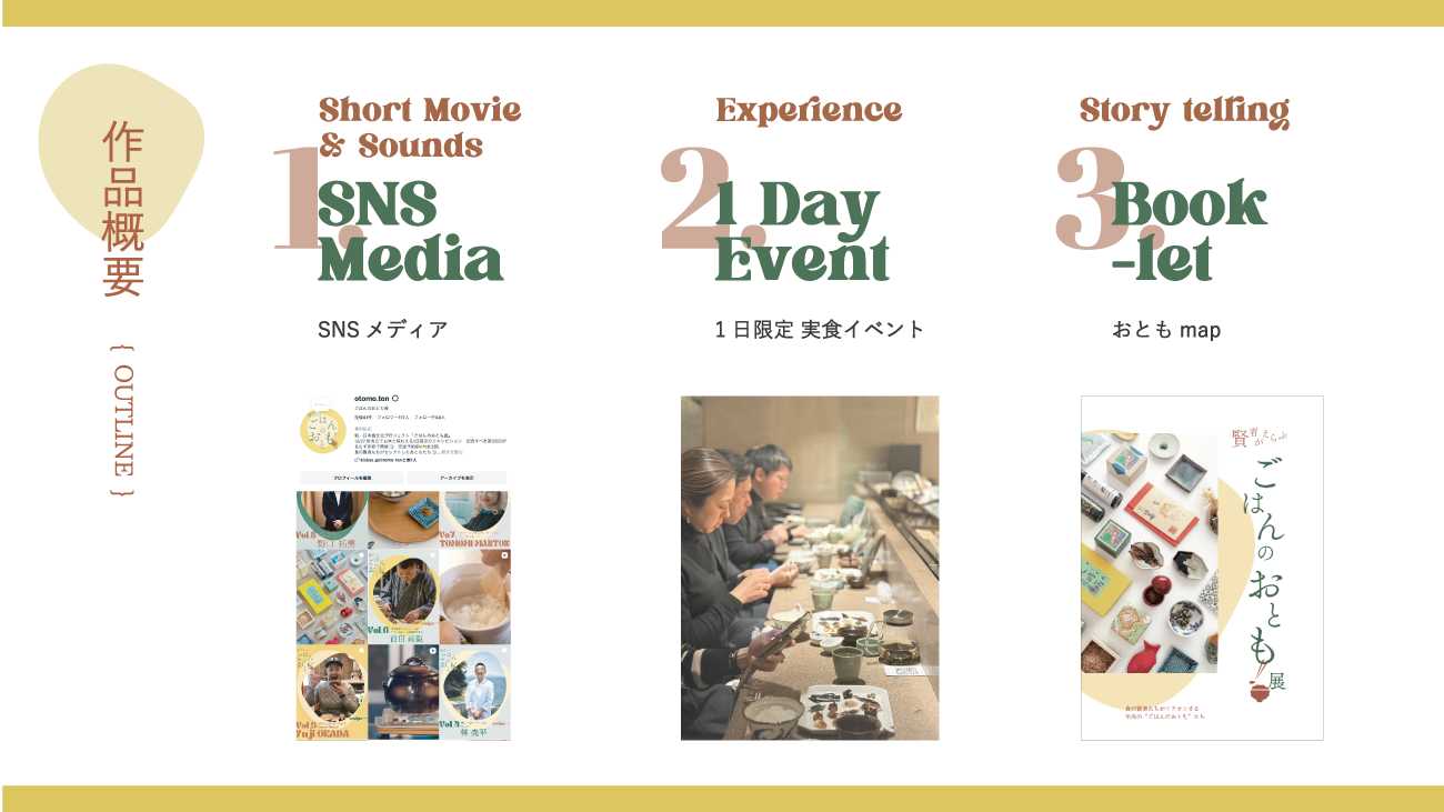 SNS発信、実食イベント、ブックレット制作を連動させ、味覚だけでなく、音・映像・物語を含む五感体験を設計しました。さらに、食に精通する19名の推薦によって信頼性を担保し、オンラインとオフラインが循環する構造を構築しました。体験を通じて、価値を実感できる場づくりを目指しました。