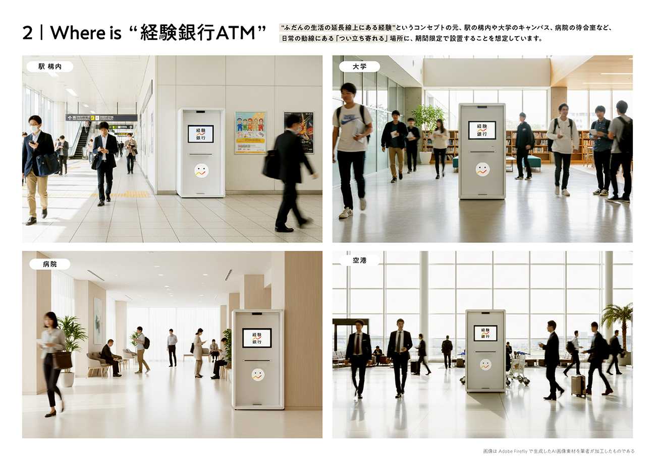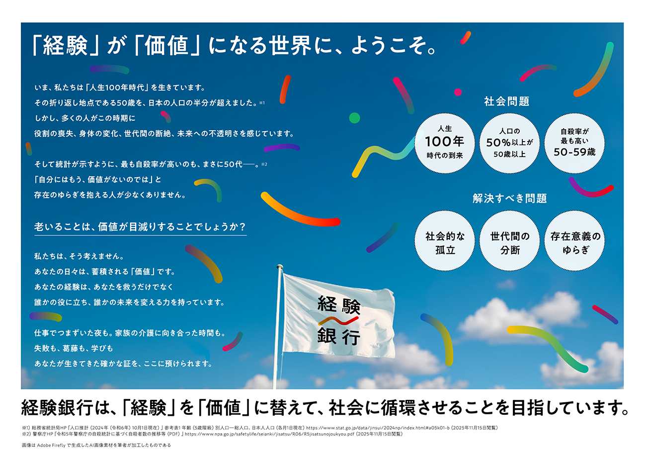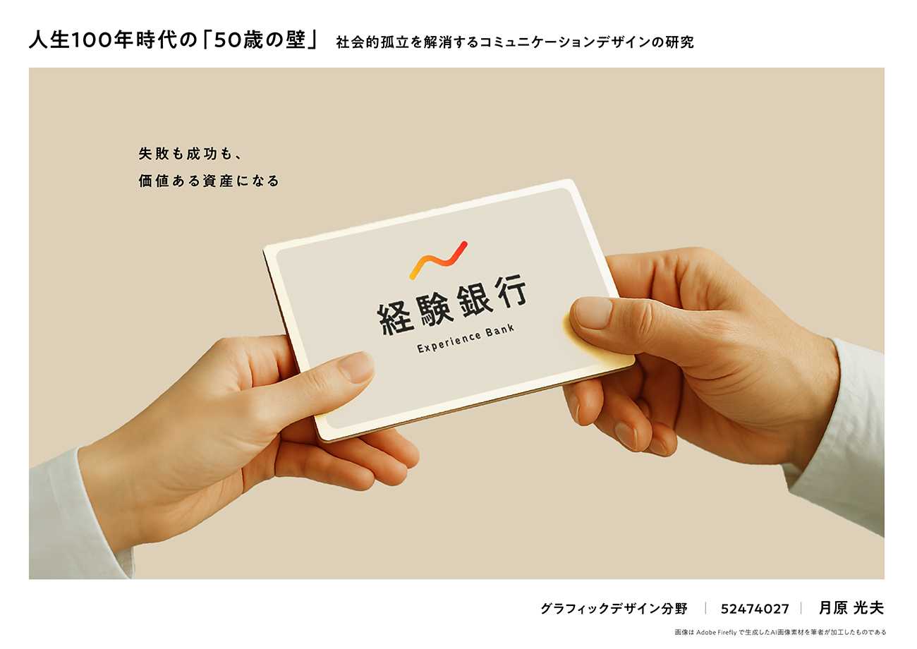 この問いを起点にフィールドワークを重ね、50代をはじめとする社会的孤立を抱えやすい人たちが、もう一度社会と緩やかにつながり直すためのコミュニケーションデザイン「経験銀行」を構想しました。