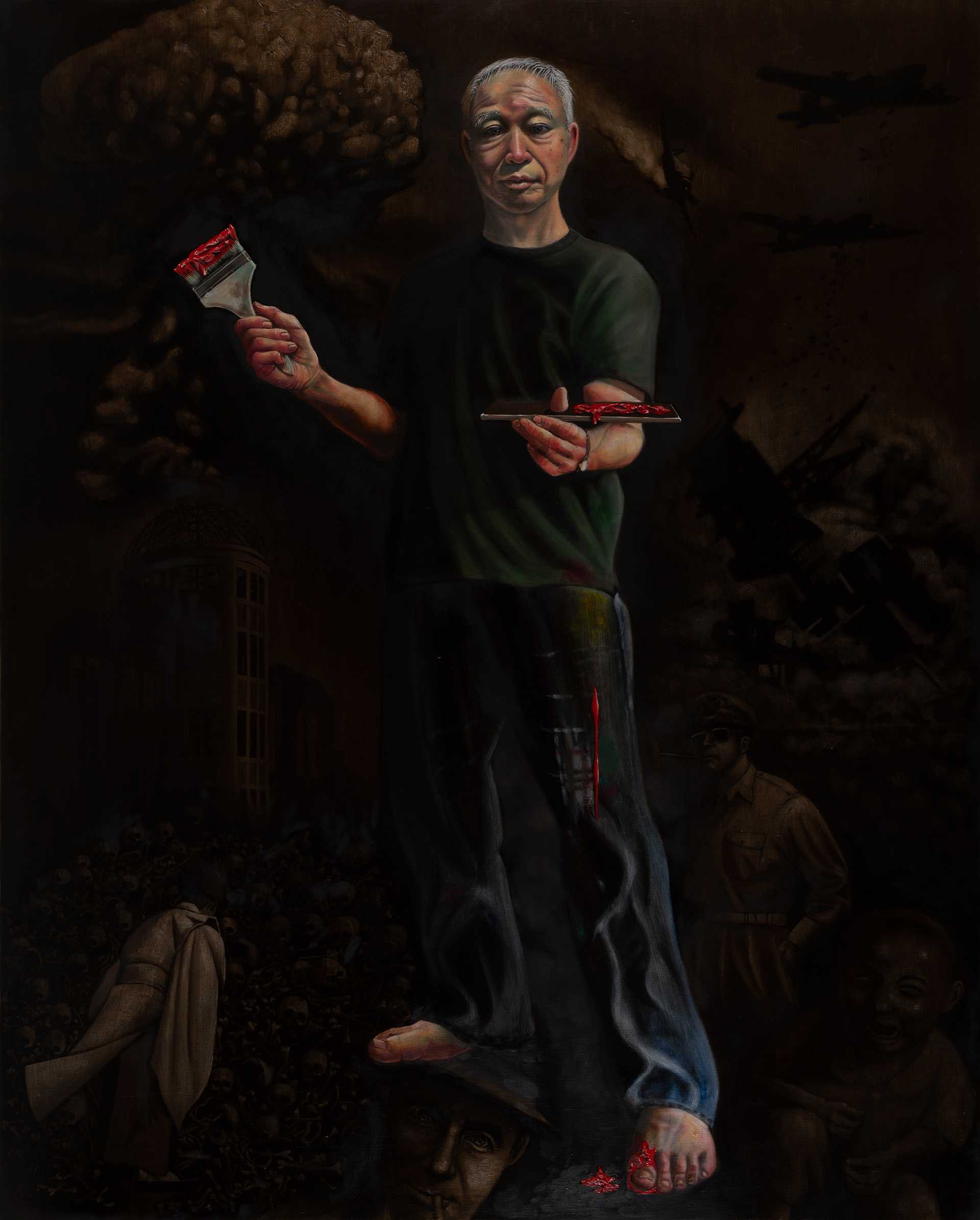 現在は社会的テーマをもとに抽象画を描く。
