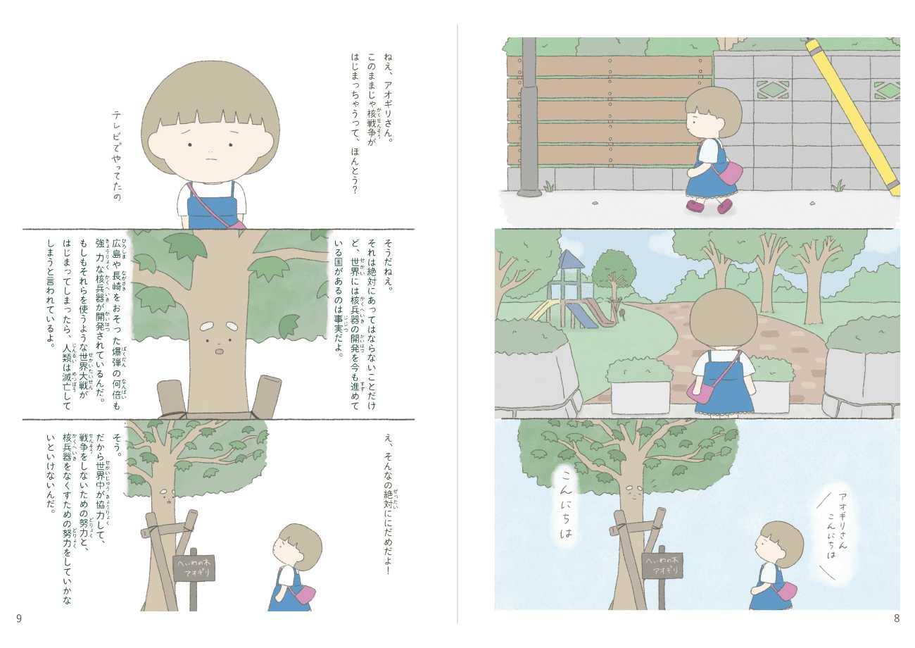 テレビを見て「このままでは核兵器を使った世界大戦が起こってしまうかもしれない」と知った女の子・るーちゃんは、真相を知るために公園にいるアオギリさんを訪ねる。