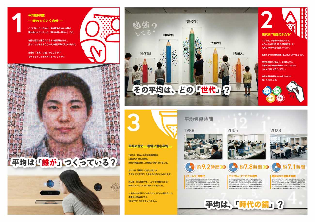 本展が提示するコンセプトは、《「 平均」という虚構を可視化し、個性を見つめ直す》ことです。 かつての常識が今の非常識になるように、平均もまた、歴史や環境によって絶えず変化し続ける「過去の記録」でしかありません。