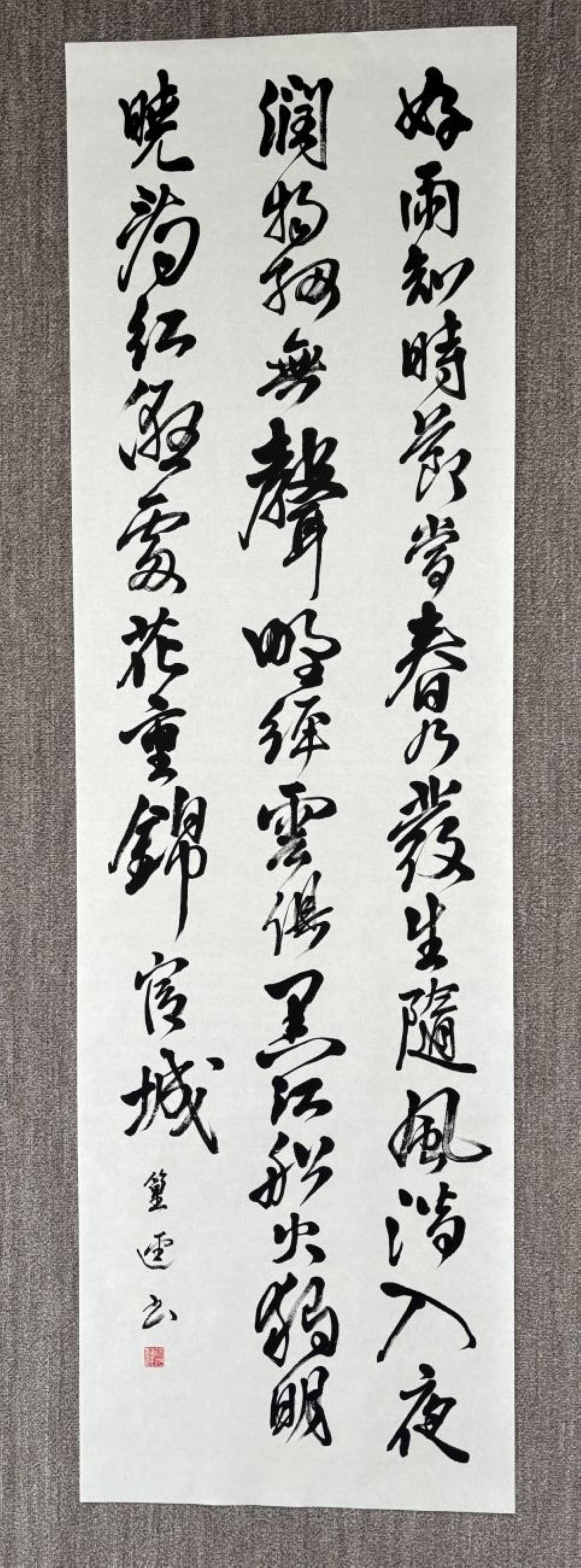 もともと横形式のものを縦形式に書いた。各行の目を引く部分の文字を原書よりもやや大きく書くとともに、潤渇も隣り合う文字間で相互に同じ表現方とならないように変化を付けた。
