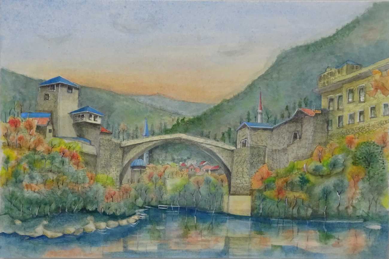 1枚は旧ユーゴスラビアの歴史、内戦、解放と独立の注釈を配した構成で、絵画による目に映る光景だけでなく、絵自身の背後にある情景や、その時代に生きた人々の命の息吹を感じてほしいという思いで全体を構成したのである。