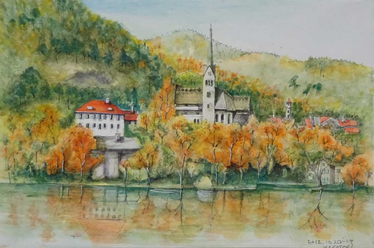 <クロアチアの港町><モンテネグロの大聖堂><ボスニアヘルツェゴビナの古い橋><スロベニア、ブレッド湖の聖マリア教会>P6