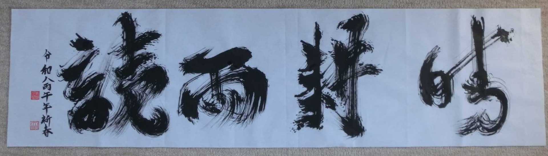 文字を「読むもの」だけでなく「感じるもの」として伝えたいという思いから、感情やエネルギーを視覚化しました。伝統を大切にしながらも、自分らしいポップな感覚を加えることで、若い世代や海外の人にも届く書の可能性を広げたいと考え、作品を作りました。