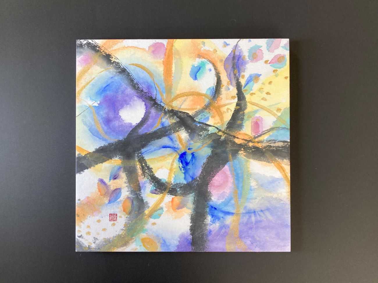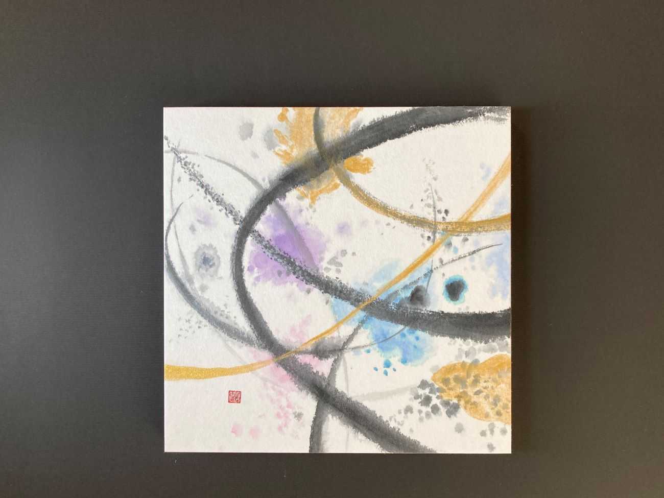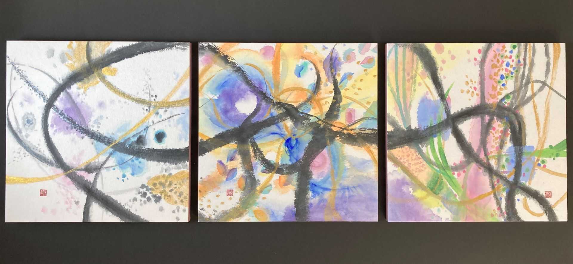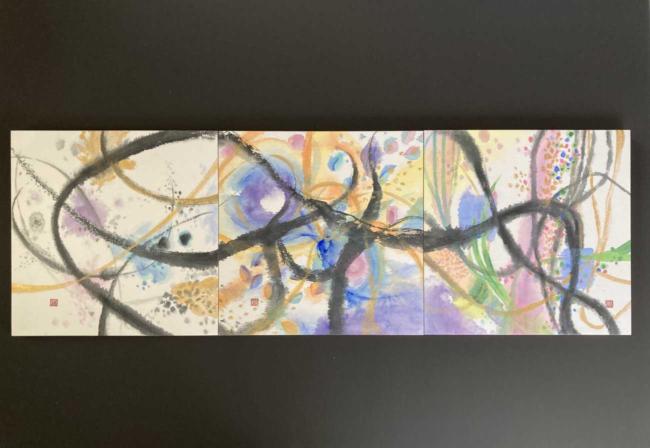 わたしたちは、雪の中にある梅の花のほころび始めと共に春の訪れを知り、満開の桜の華やかさに魅了される。そして、ふと見上げると夜空には月が輝き美しい光を放ち、わたしたちを照らしてくれる。また冬には、冷たく清らかな雪がわたしたちに四季の移り変わりを教えてくれる。この「雪」「月」「花」の三つを合わせて、一つの作品としている。「雪」「月」「花」をつなぐ墨線と余白が自然の移り変わり、時間の流れを表現しており、「雪月花」として一体化している。