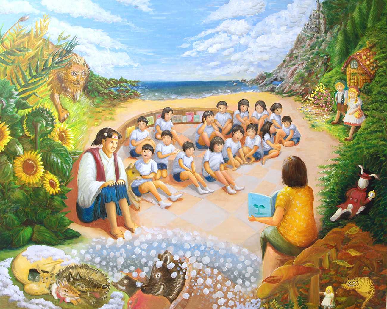 HOME 洋画コース 「おやすみのまえに」 「おやすみのまえに」 洋画コース 松井 葉子 130.3 × 162cm キャンバス/油彩 画像を拡大 CLOSE 絵本の持つ力(想像力・共感力・思いやりの心を育む、他者の人種や生活や文化を理解し尊敬するなど)を通しリジリエンスを養うことは、その後の人生に大きな影響を与えると信じてやまない。一つ一つ、1ページ1ページ、心を込めて丹念に描かれた場面は、たとえ小さなモノクロの挿絵であっても、周りの景色や前後のストーリーを彷彿とさせることのできる力を持っている。 今回は子供たちに広がるの想像の世界を描いた。 「みんなでおはなし」 130.3 × 162cm キャンバス/油彩 Tag #人物画 #自然を描く #イメージを描く 松井 葉子 洋画コース 東大阪市在住 Share Xでシェアする LINEでシェアする このコースのその他作品 洋画コース 2025年度作品 作者加藤 敦史 洋画コース 2025年度作品 作者廣瀬 幸子 洋画コース 2025年度作品 作者鎌田 千賀子 洋画コース 2025年度作品 作者楠本 和世 洋画コース 2025年度作品 作者楠瀬 伸和 洋画コース 2025年度作品 作者阿野 裕美 洋画コース 2025年度作品 作者井上 京子 洋画コース 2025年度作品 作者山本 茂 洋画コース 2025年度作品 作者松隈 あや 洋画コース 2025年度作品 作者松下 仁