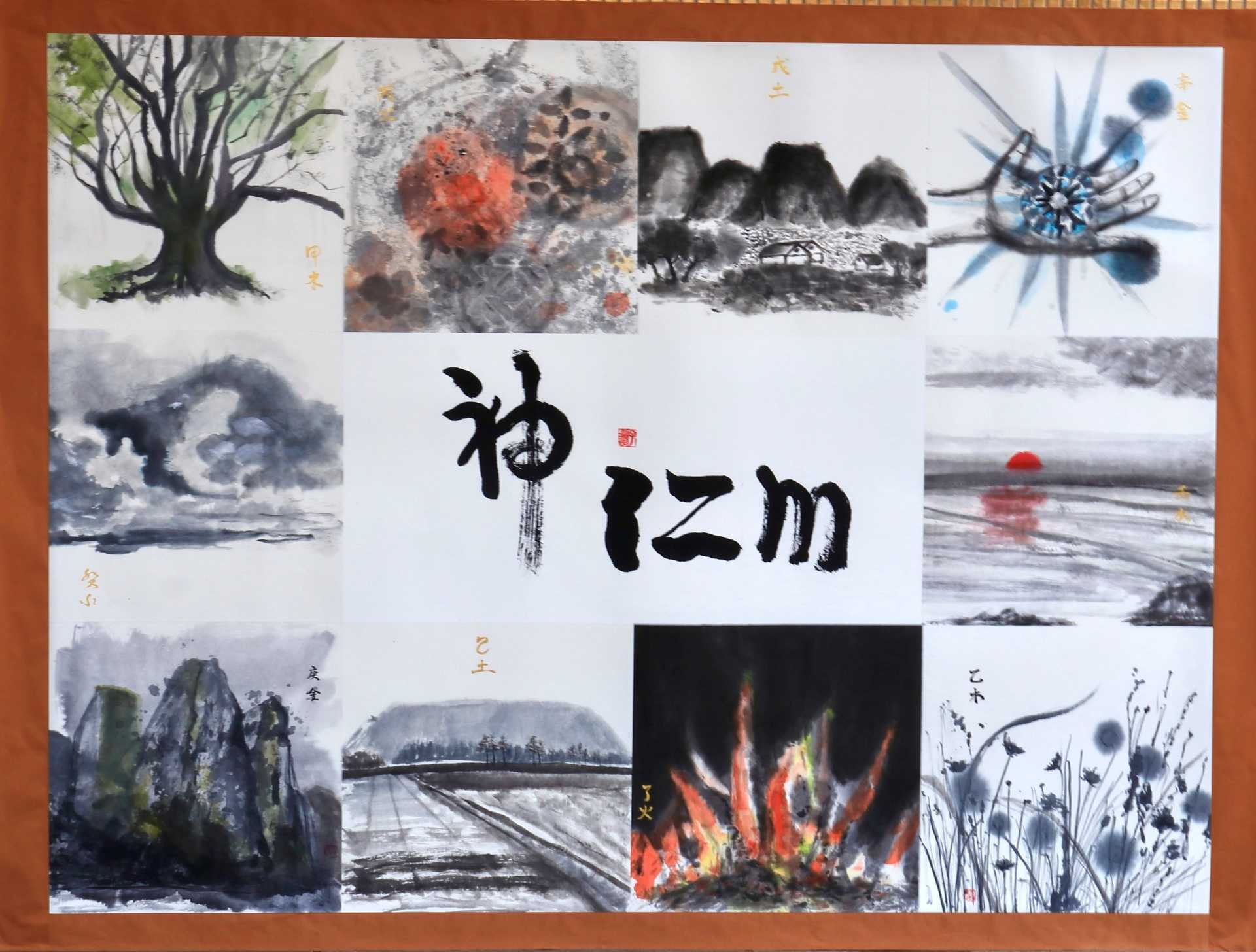 墨流しの偶然できた模様で海の表情を表し、飼っている亀からヒントを得て、「万年生きる」といわれる亀が見た海の未来はどうなっているのだろうか…と想像し幻想の世界を表現した。