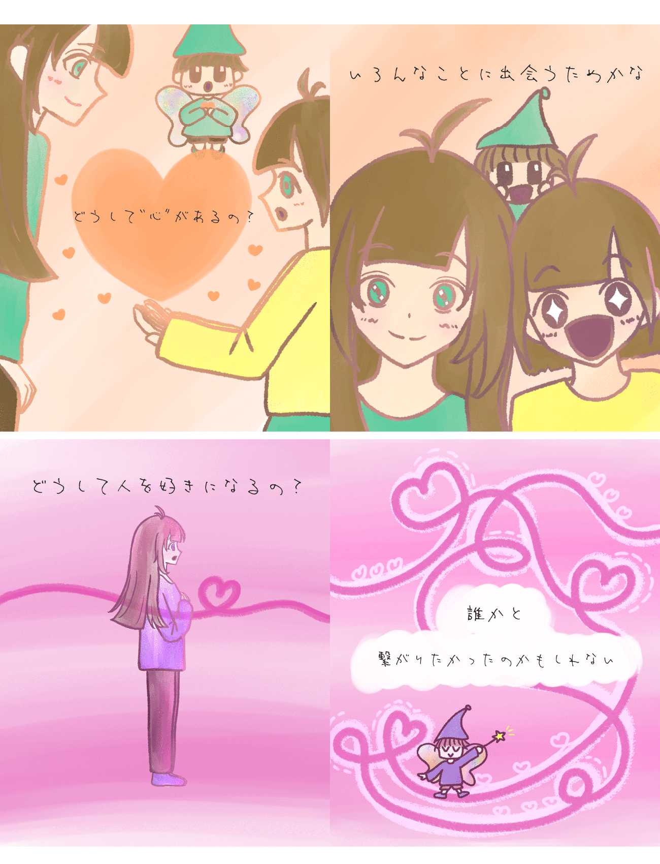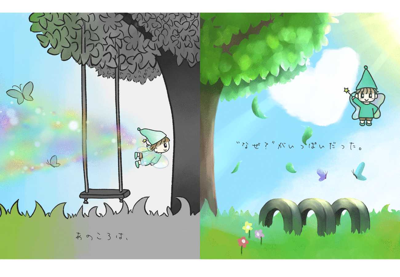この絵本は質問と答えを繰り返していますが、これはあくまで“私の考えた答え”であり、必ずしも一致している必要はありませんし、“そんな訳ない”と思われてもマイナスな意見だと思いません。それに、必ずしもちゃんとした答えである必要はないと言うこともこの絵本を通して伝えたいことのひとつです。人からの批判や反対意見が怖くて完璧を求めてしまう人は少なくなく、私自身もそのうちの一人です。しかし子どもの頃はもっと無邪気に色んな物に触れて色んなことに興味を持っていて、むしろそれらは成長する過程でとても大切な行動のひとつでもあるのです。