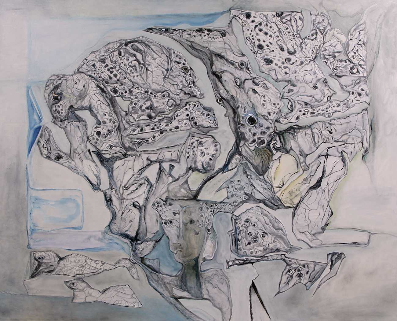 HOME 洋画コース 「静の瀞」 「静の瀞」 洋画コース 下向 栄一 130.3 × 162cm 油彩/キャンバス 画像を拡大 CLOSE 深く静まり返る瀞の岩肌には、長い時間をかけて刻まれた無数の層と亀裂が存在している。 本作《静の瀞》では、熊野の瀞峡に見られる岩の構造をモチーフに、侵食と堆積によって形成された自然の「静かな力」を描いた。 重なり合う色層と沈んだ色調は、水面下に広がる静寂と、内に秘めた圧倒的な存在感を象徴している。 静けさの中に宿る、動かぬ強さと時間の重みを表現した。 「浸食の構造」 130.3 × 162cm 油彩/キャンバス Tag #抽象画 #自然を描く #心象画 下向 栄一 洋画コース CONTACT 私は和歌山県熊野地域の自然、とりわけ瀞峡の静かな水面と、三輪崎・鈴島立岩の荒々しい岩の造形に強く惹かれ、制作を続けています。長い年月をかけて侵食されてきた岩肌や地形には、自然の力と時間の痕跡が刻まれています。私は画面全体の構成を特に重視し、形の配置やリズムによって空間の緊張感や静けさを表現することを大切にしています。また、一つの作品に対して何度も試行錯誤を重ね、納得のいく表現に到達するまで描き直す姿勢を貫いています。油彩ならではの重なりや質感を生かし、具象と抽象のあわいを行き来しながら、風景を記憶や感情の層として描いています。 Share Xでシェアする LINEでシェアする このコースのその他作品 洋画コース 2025年度作品 作者香月 広 洋画コース 2025年度作品 作者八木 貴子 洋画コース 2025年度作品 作者土田 あゆみ 洋画コース 2025年度作品 作者堀之内 里奈 洋画コース 2025年度作品 作者阿野 裕美 洋画コース 2025年度作品 作者尾棹 今日子 洋画コース 2025年度作品 作者匂坂 かおる 洋画コース 2025年度作品 作者廣瀬 幸子 洋画コース 2025年度作品 作者鎌田 千賀子 洋画コース 2025年度作品 作者鈴木 克人