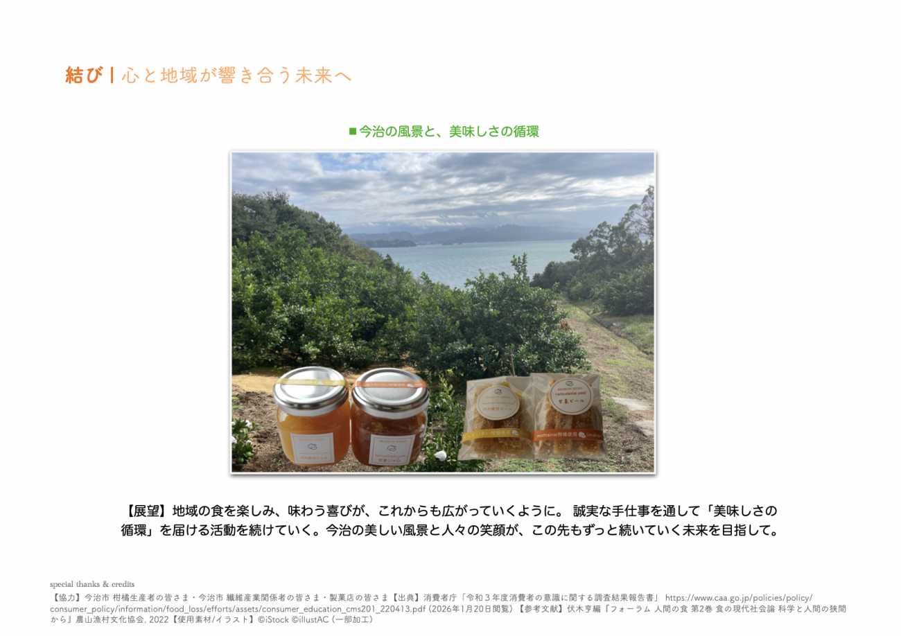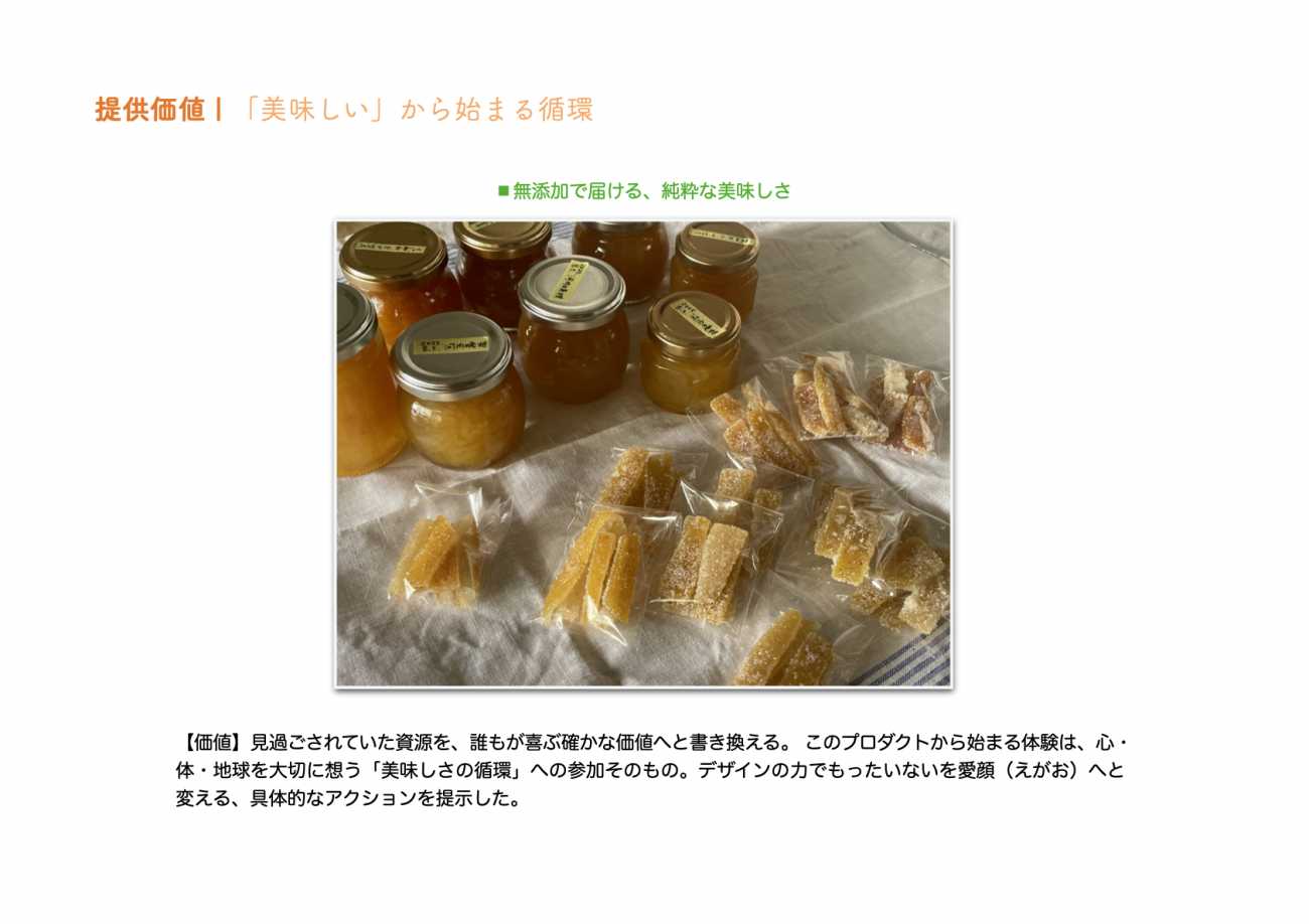 「美味しい」という純粋な感動が、地域や環境への貢献に自然と繋がっていく。このプロダクトが、個人の喜びと社会の課題解決が共鳴し合う、健やかで持続可能な食のあり方を提案する起点となることを願っています。