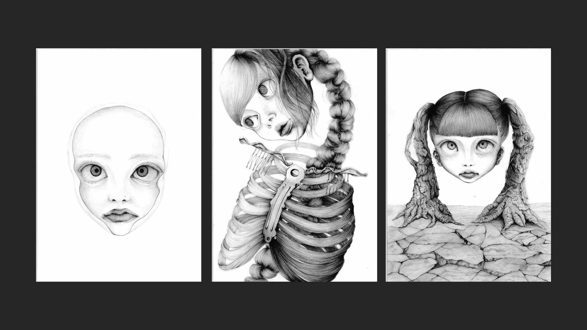 独自の少女性を探求する3つの鉛筆画