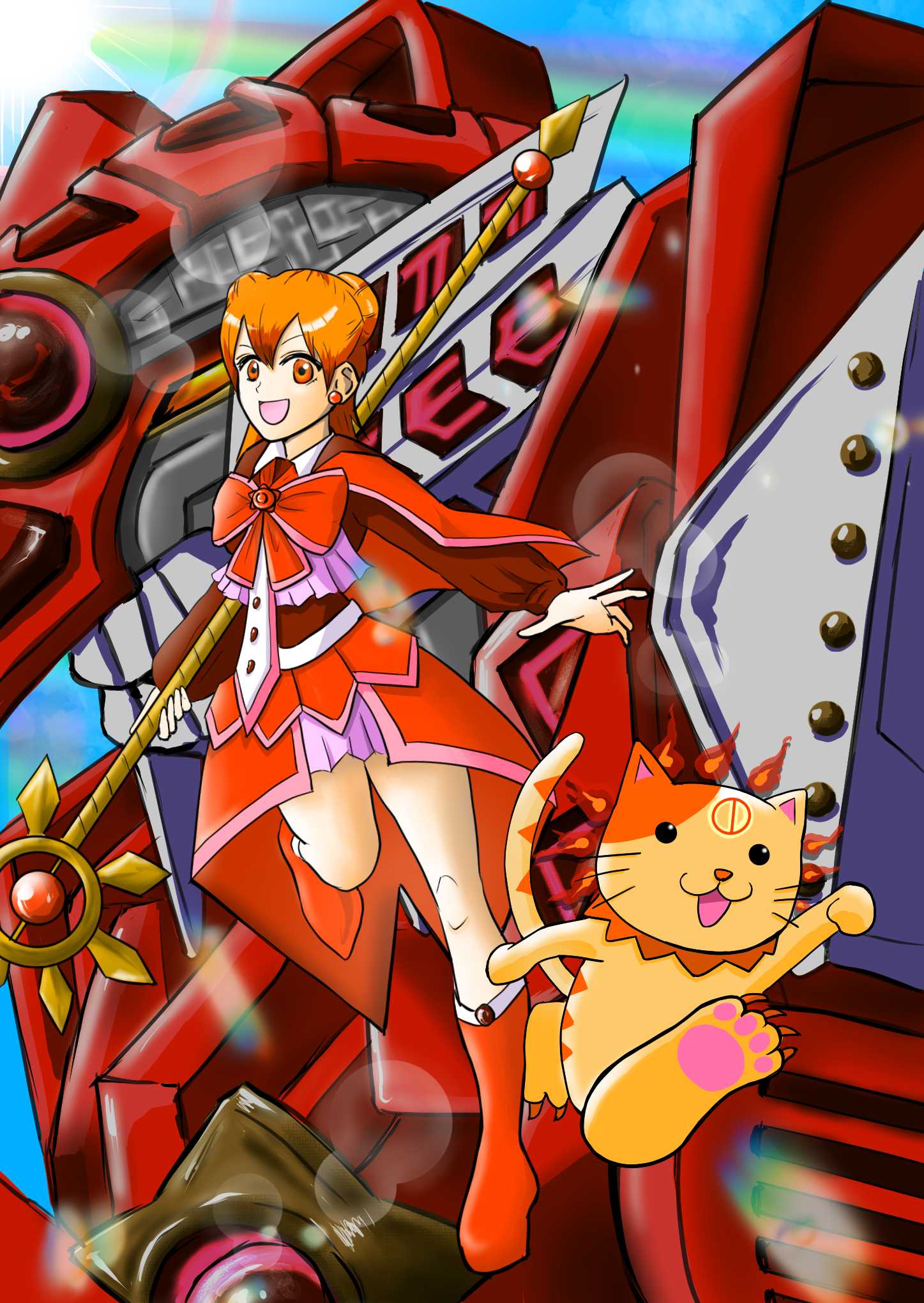 ①晴れイラスト…「太陽・晴れ(赤、オレンジ色)、太陽神をイメージした猫」