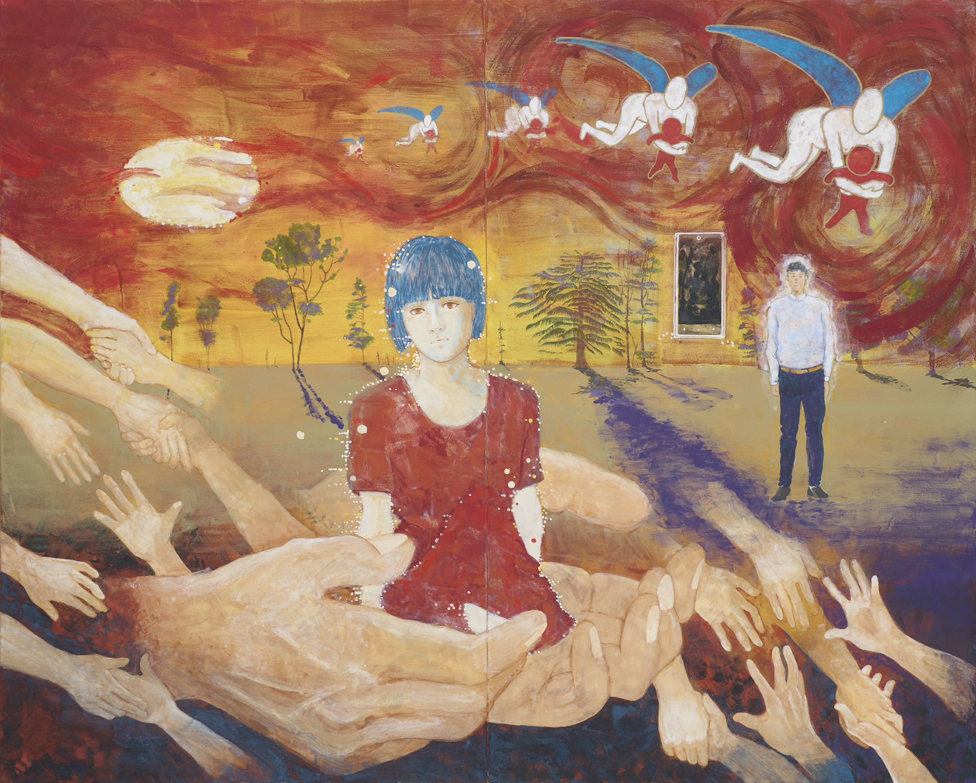 大きな眼、青い眉とくちばし。その姿をとてもかわいく感じました。獰猛なはずの猛禽類ですが、私が感じたかわいらしさを表現しました。