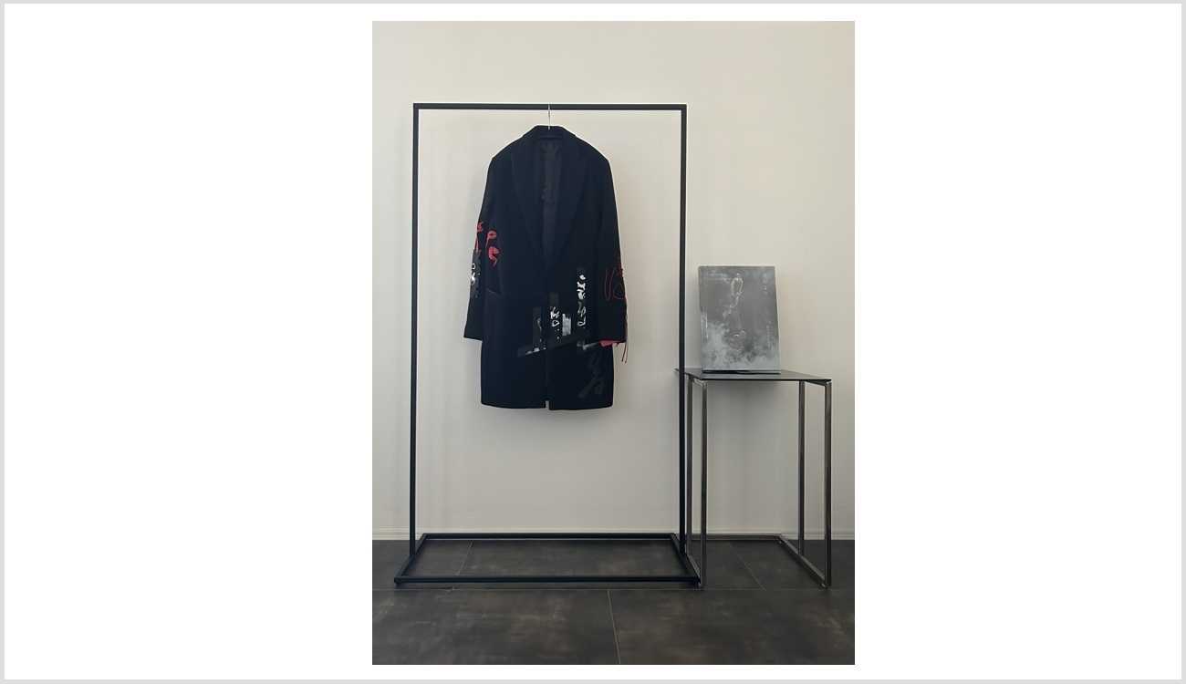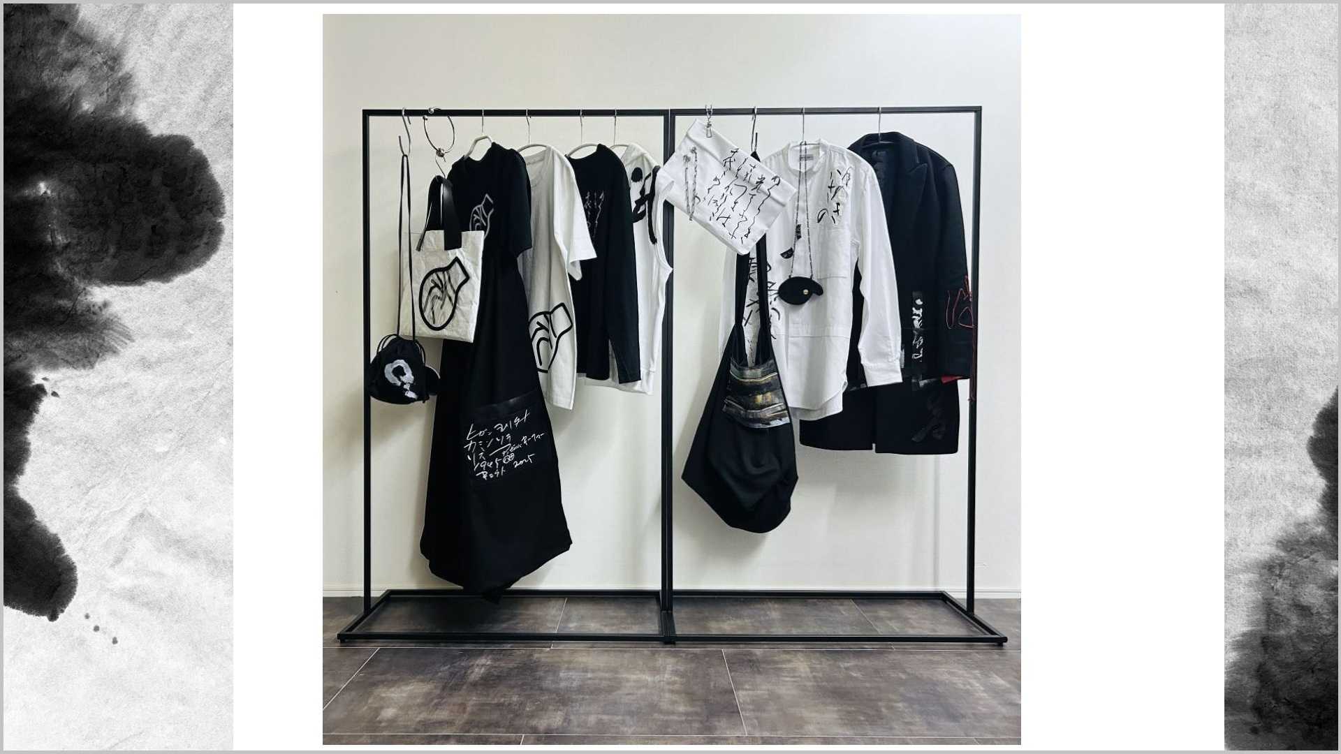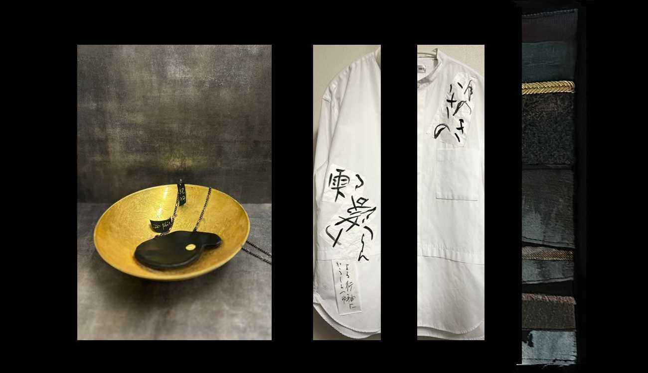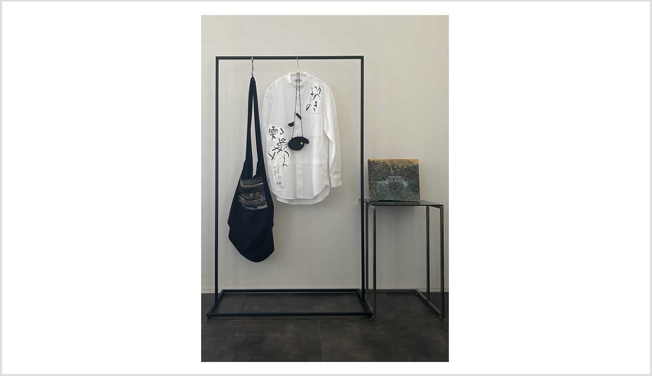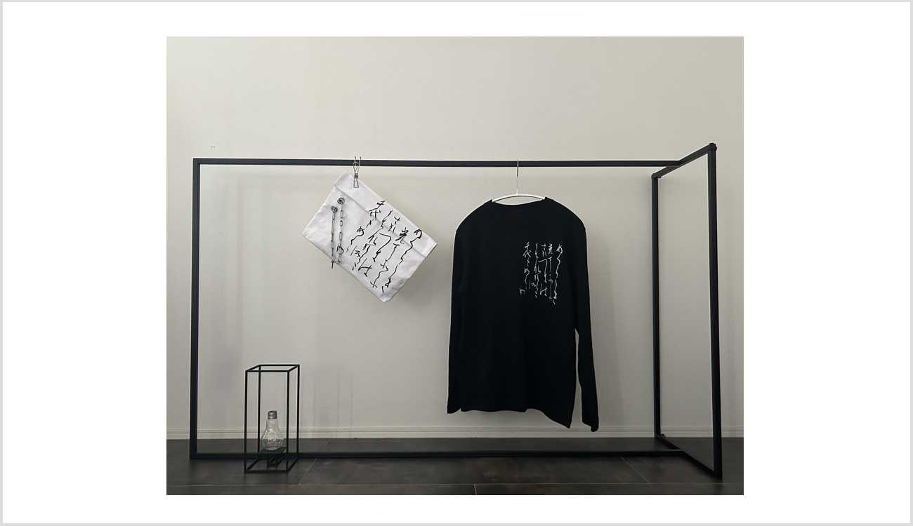 アンゼルム・キーファー《Are These Drops Falling from the Hat Worn by the Moon 月のきるかさの雫や落つらん》の作品タイトルの元である和歌をシャツ上に表現した。オマージュ作品として、パレットケース、バッグも製作した。