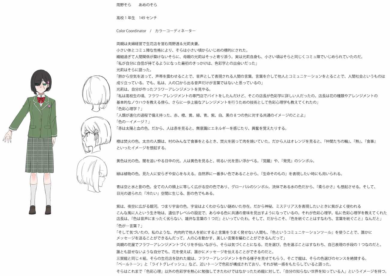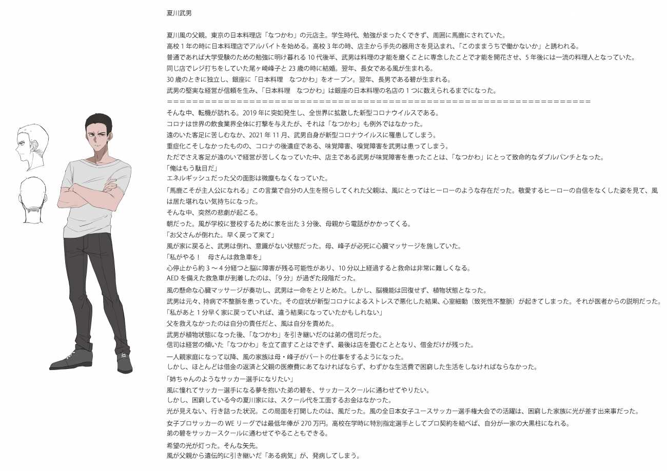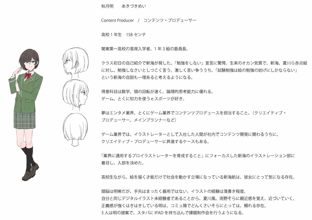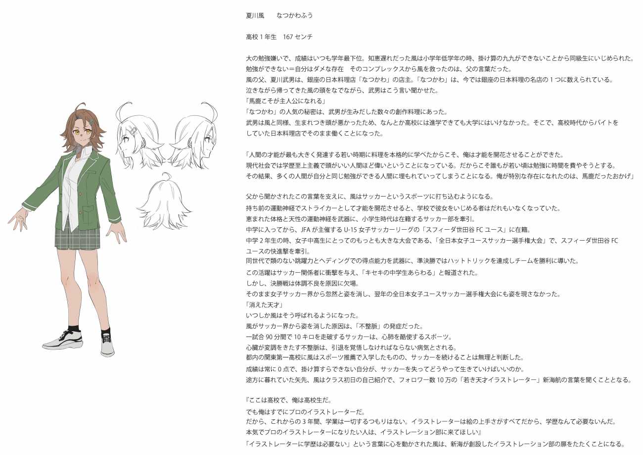 不整脈でサッカーを引退せざるをえなくなった少女が、イラストレーターを目指す物語。その登場人物のキャラクターデザインとネームになります。