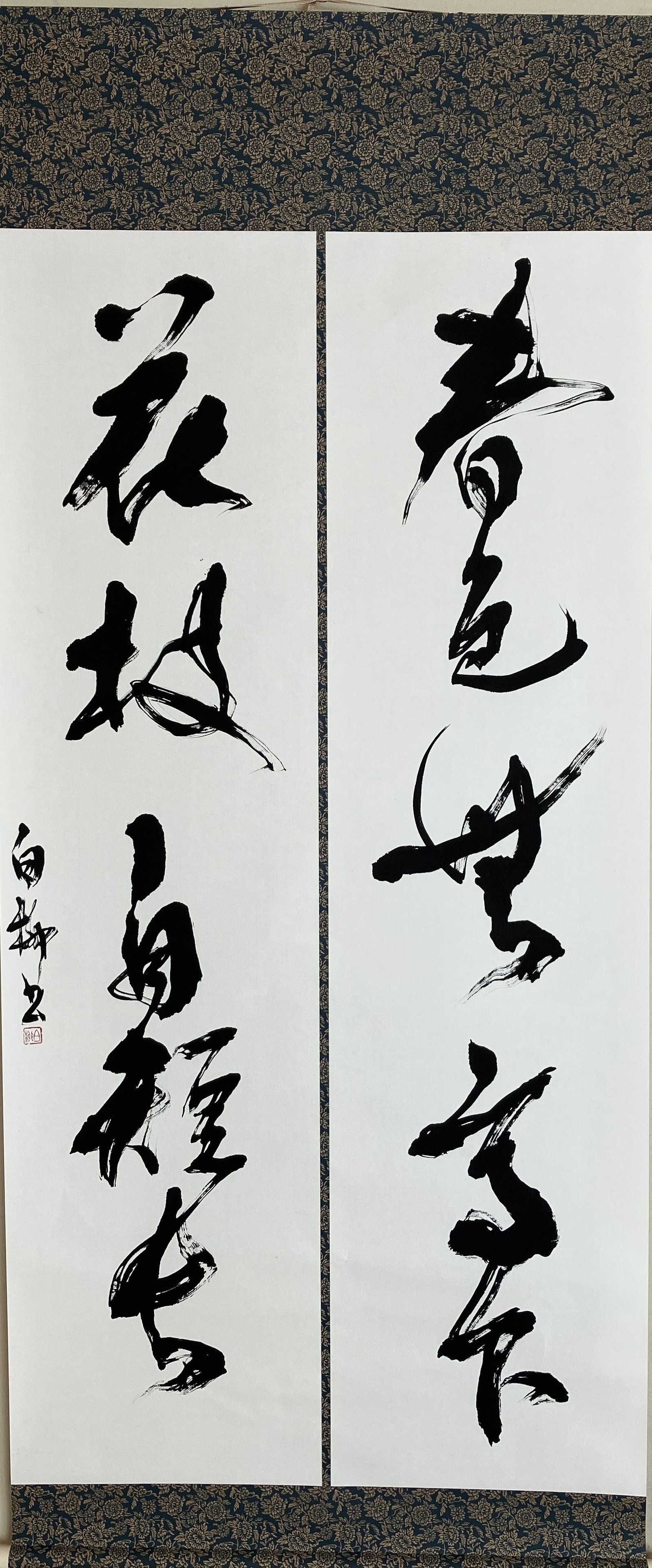 条幅4枚構成ではあったが、思うようにいかず何度も書き直し膨大な時間を費やしたが、自身の根気と集中力が問われた作品だった。完成後、振り返れば苦しいながらも充実した楽しい時間を過ごすことができた。さらにまた一歩、書の世界観が広がったと感じている。