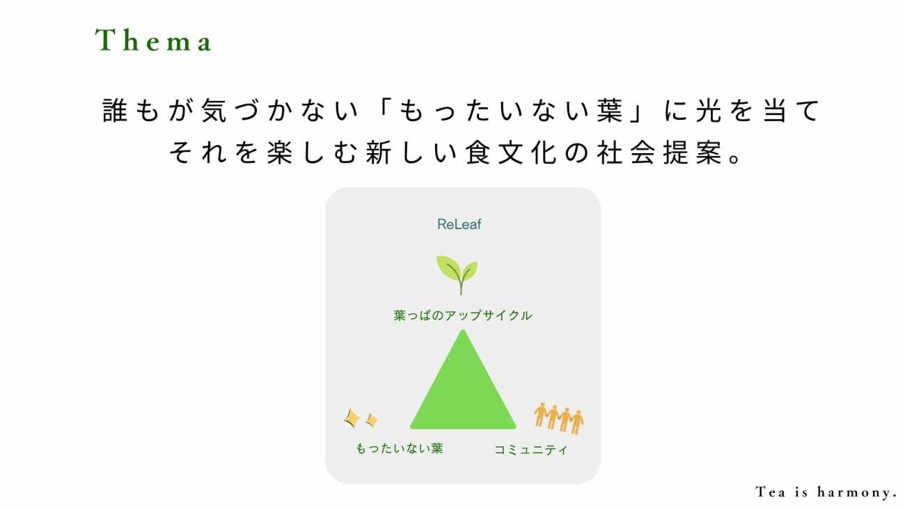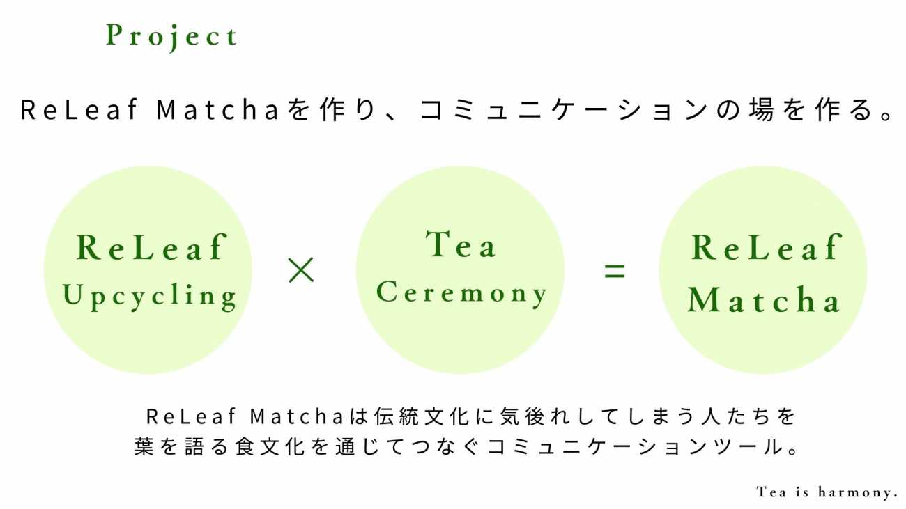 ReLeaf Matchaは伝統文化に気後れしてしまう人たちも気軽に引き入れ、葉を語るツールとなります。