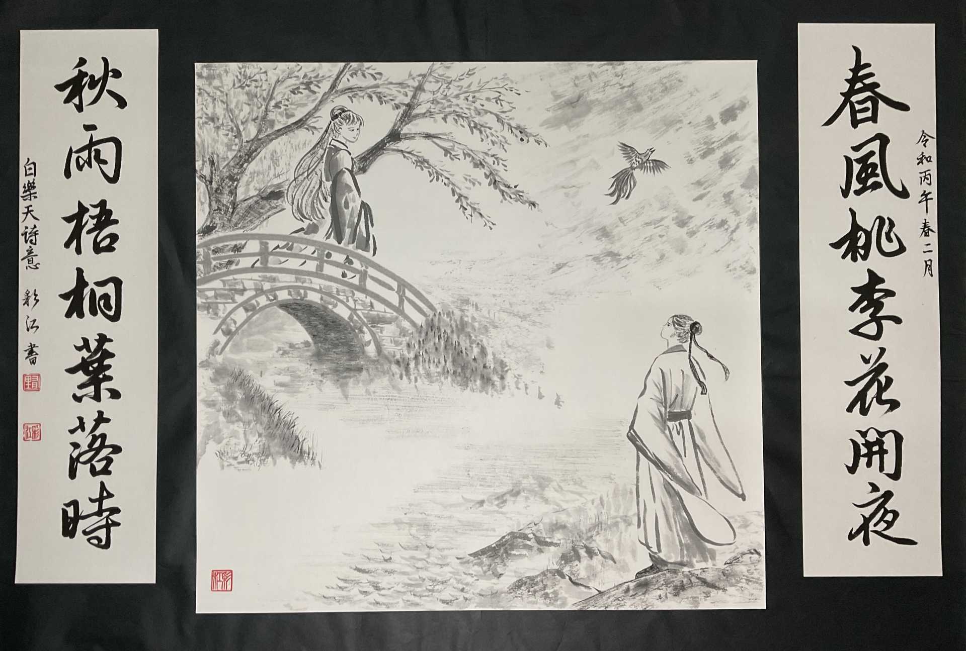 「春風桃李花開夜/秋雨梧桐葉落時」の対句によって表現した。