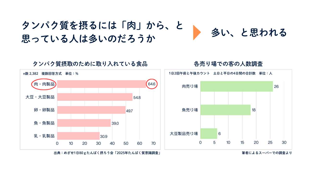 私の家族がそうだったように、タンパク質を摂るには「肉でしょ!」と思っている人は多いのではないでしょうか。
