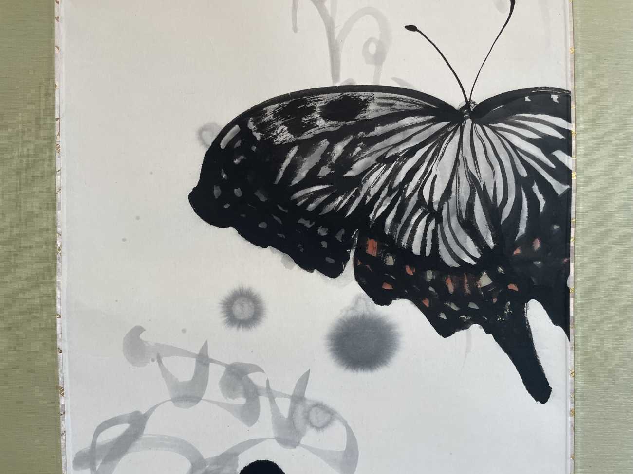HOME 書画コース 悠蝶樂舞 悠蝶樂舞 書画コース 梁田 有利 (Yuri Yanada) 半切サイズ(約35㎝×136㎝)手漉画仙紙「玉山」 画像を拡大 CLOSE めまぐるしく移ろう世界の中で、私たちは日々情報に追われ、時代の速さに合わせようと足早に歩いて過ごしている。 そんな世界で、ふと立ち止まり上を見上げると、蝶が舞う姿に足が止まる。 優雅に舞うその姿は、周囲の時間をそっと緩めてくれる。 そして、心の余白と自然の持つ豊かさをそっと思い出させてくれる。 Tag #水墨画 #書画同源 #余白 梁田 有利 Yuri Yanada 書画コース CONTACT 奈良県の「山の辺の道」近く、自然に囲まれた環境の中で育ち、花や草花への関心を深める。 トールペイントの資格を取得し、結婚後は神奈川県で講師として活動。 2009年には、アーツJクラフツ展に入選。 現在は、「日常にさりげなく飾れる芸術」をテーマに、花や草花、身近な自然をモチーフにした作品を制作し、自然が持つ美しさ、儚さ、力強さを表現することを大切にしている。 Share Xでシェアする LINEでシェアする このコースのその他作品 書画コース 2025年度作品 作者大沼清巳 書画コース 2025年度作品 作者駒田伊公代 書画コース 2025年度作品 作者小黒由紀 書画コース 2025年度作品 作者唐橋美知代 書画コース 2025年度作品 作者坂本 まゆみ 書画コース 2025年度作品 作者横垣敬子 書画コース 2025年度作品 作者宮澤 祥子 書画コース 2025年度作品 作者松村由美子 書画コース 2025年度作品 作者田村奈津子 書画コース 2025年度作品 作者小川明美