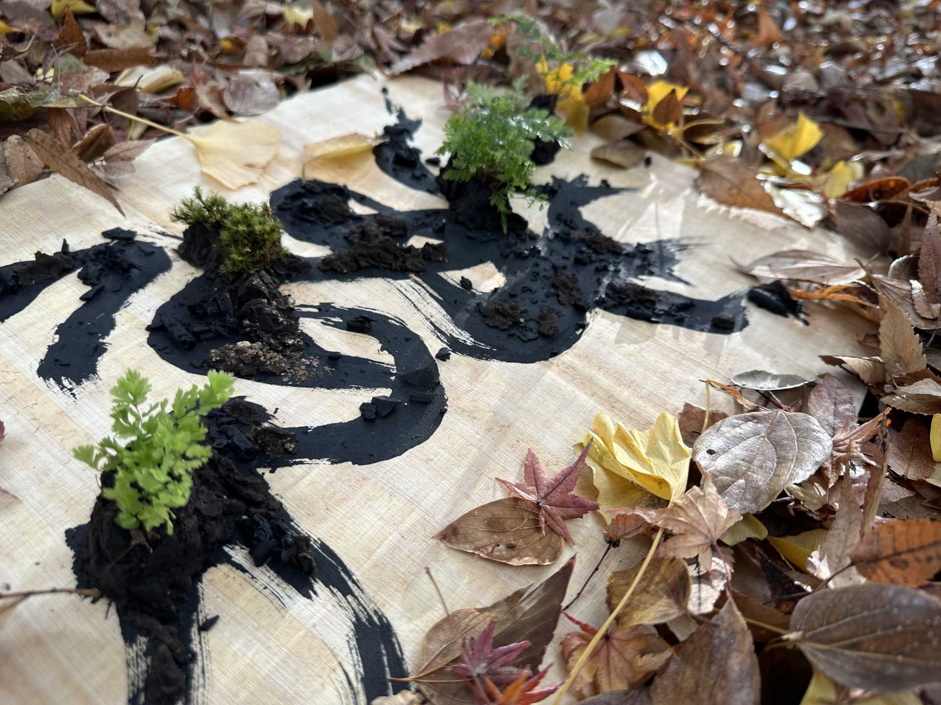 手で触れ物質を重ねることで、眼に見える小さな命の循環が生まれる