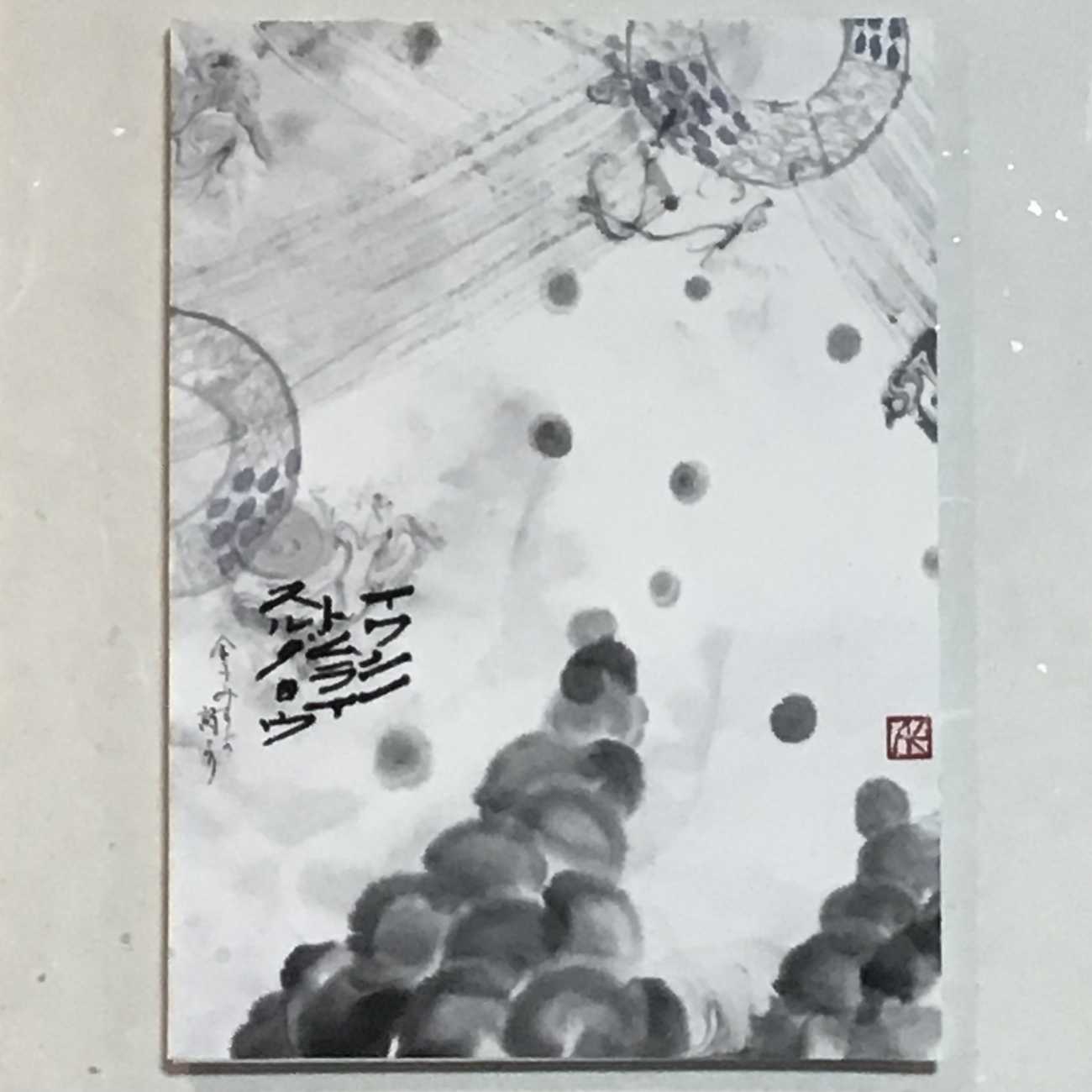 提出物が2D画像なので、水墨画で培った「対の関係」や「敢えて描かない余白」の感覚がここで活きてくる。改めて「書画同源」を実感しつつ、大理石のリンゴ(文鎮)を添えて整えた。