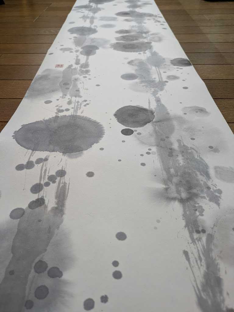 大きく滲んだ点は、ゆっくりと時間をかけて学ぶすばらしさを表現。