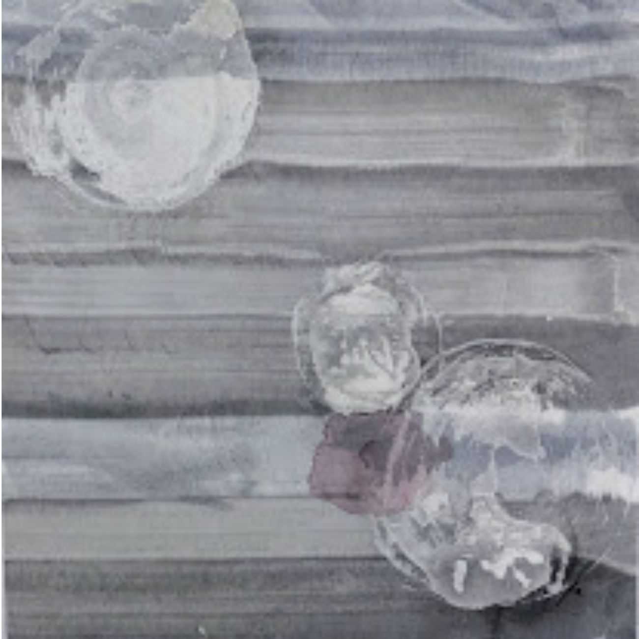 多様な中に自分もいる。同じになんてなれない。炭酸の泡のようなモチーフをイメージ。大きさや形の違う点が湧き出る中に、赤いドットの私がひょいっと顔を出す。誰かと同じでいたくない自分を赤色で表現。