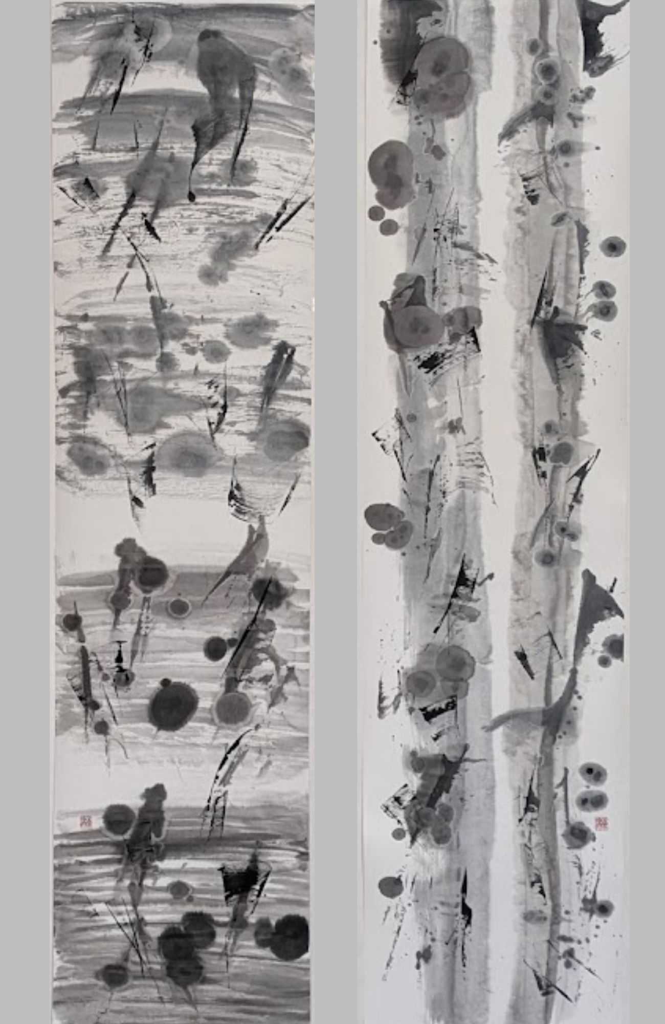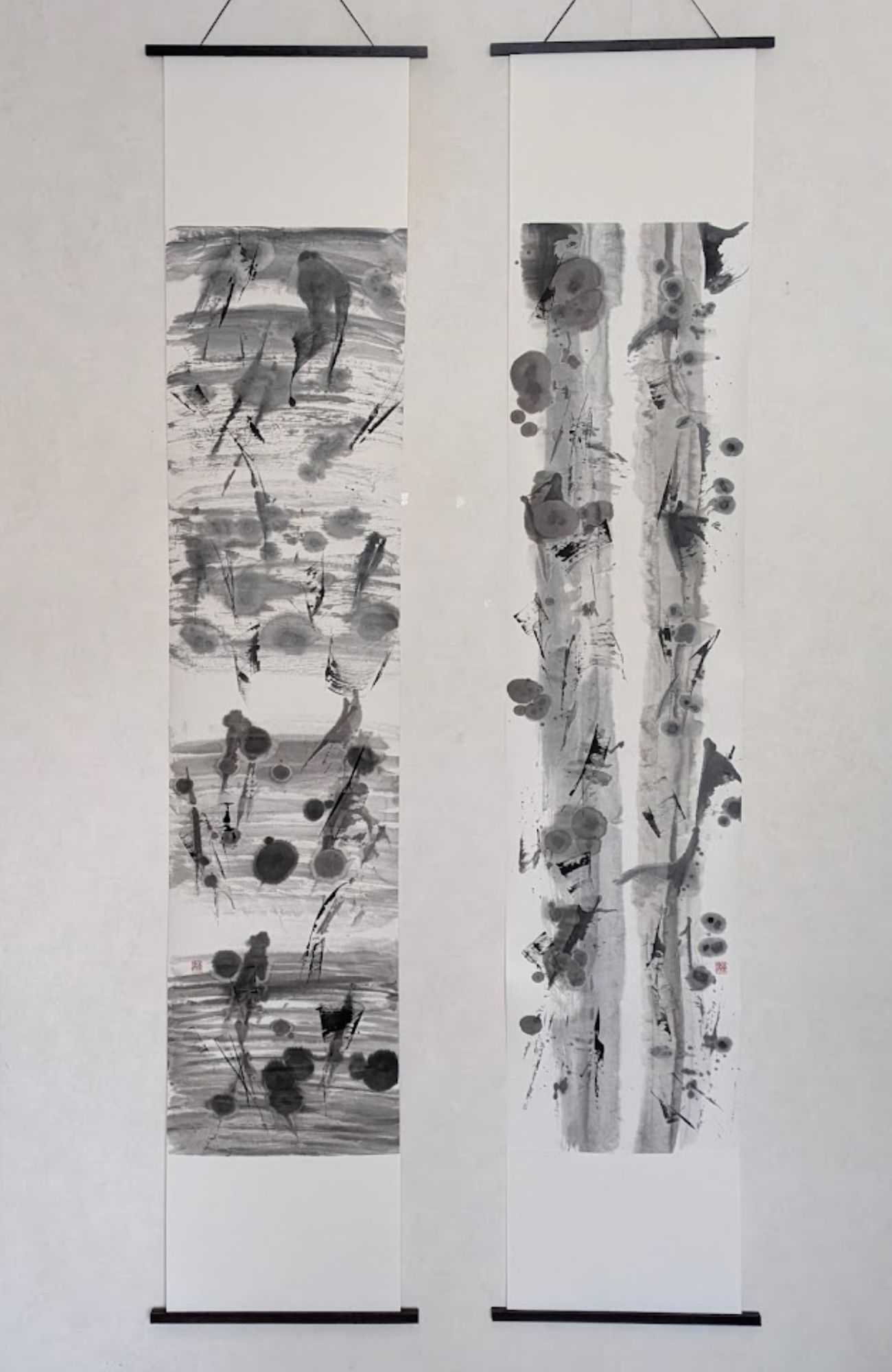 書画以外の他領域の学びと知識をたくさん得たことが大きな財産となった。そんないろいろな学びを、様々な墨のモチーフを使って表現しようとした試行錯誤の卒業制作。