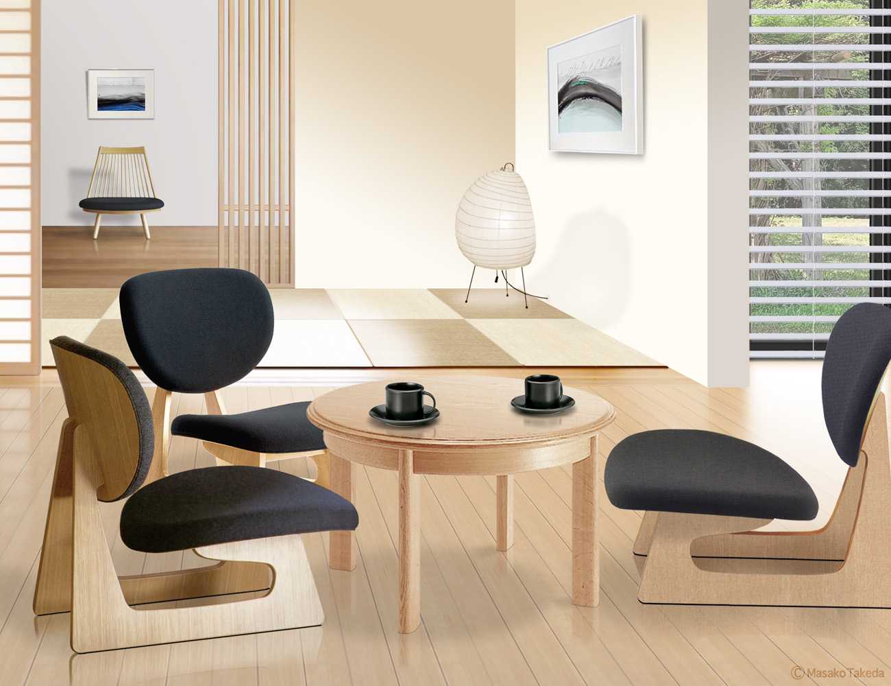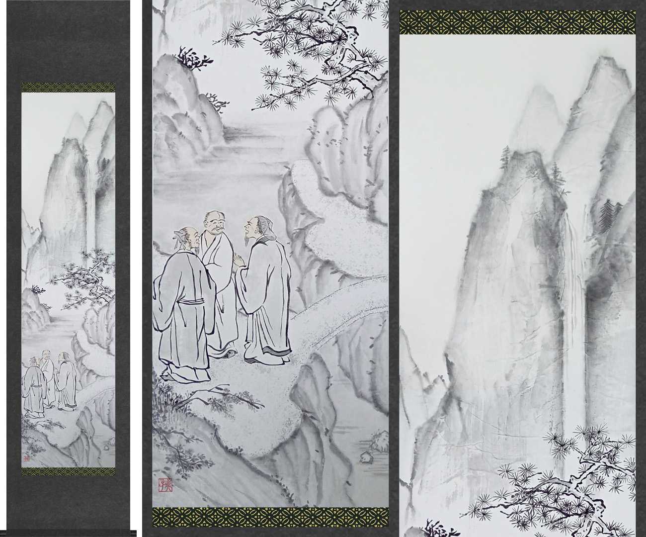 伝統性を主体とした「虎渓三笑図」では、故事に登場する慧遠法師・陶淵明・陸修静の三人を心の中で家族に置き換え、苦行の中にも笑いがあり、笑い合える仲間(家族)がいる幸せを大切にしたいという思いを作品に込めた。
