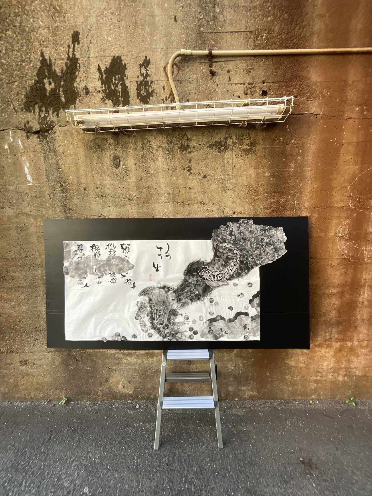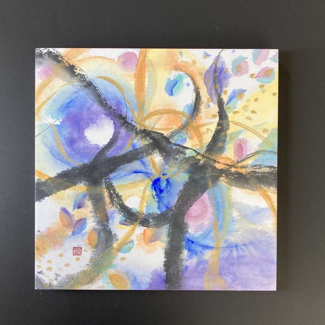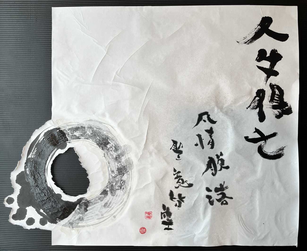 禅画の古典的テーマである十牛図から、捕らえた野生の牛を飼い慣らす事に成功した「牧牛」の場面を取り上げた。