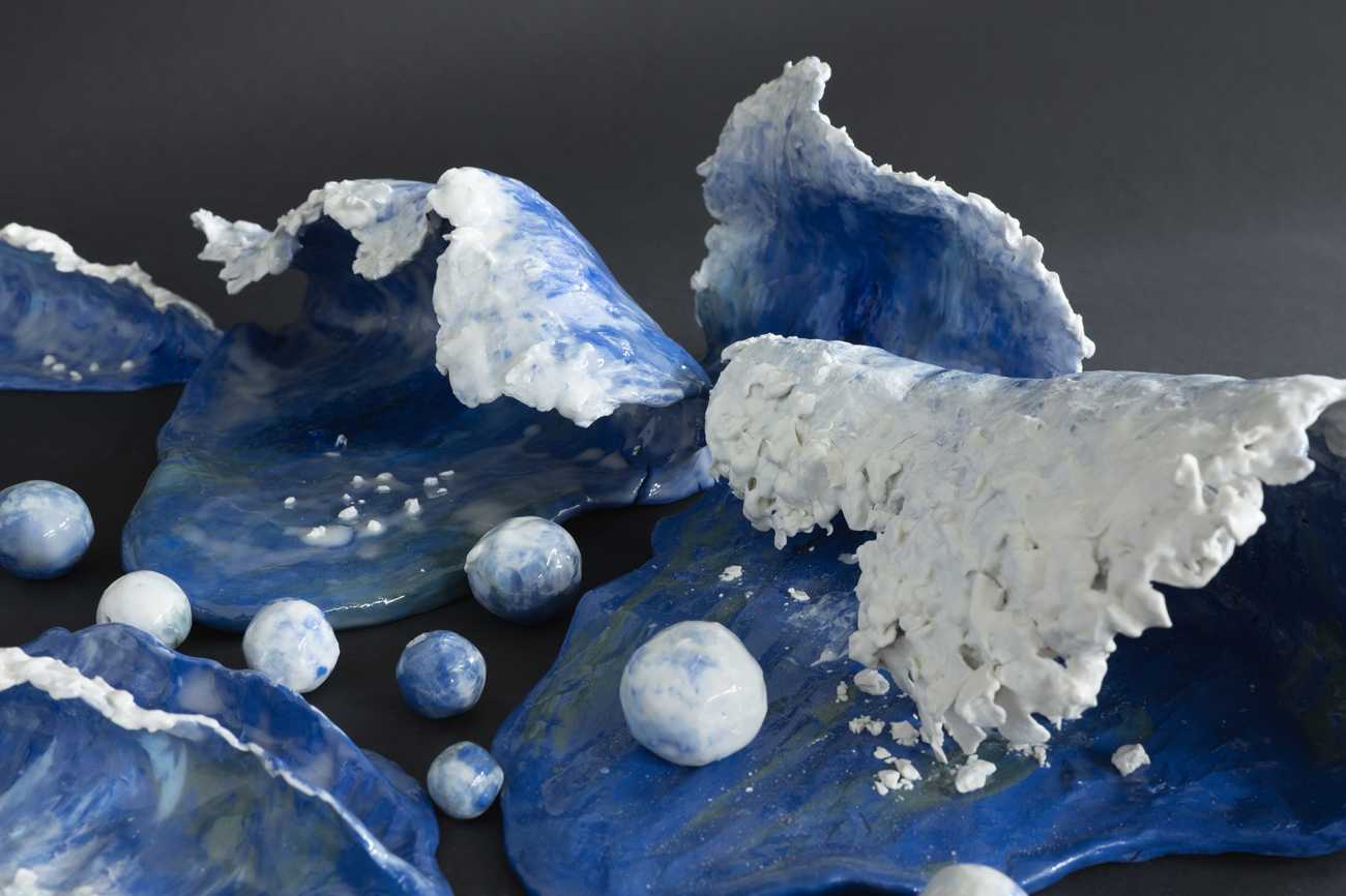 磁土/1号透明釉、顔料(海碧、青、ピーコック、トルコブルー)/酸化焼成