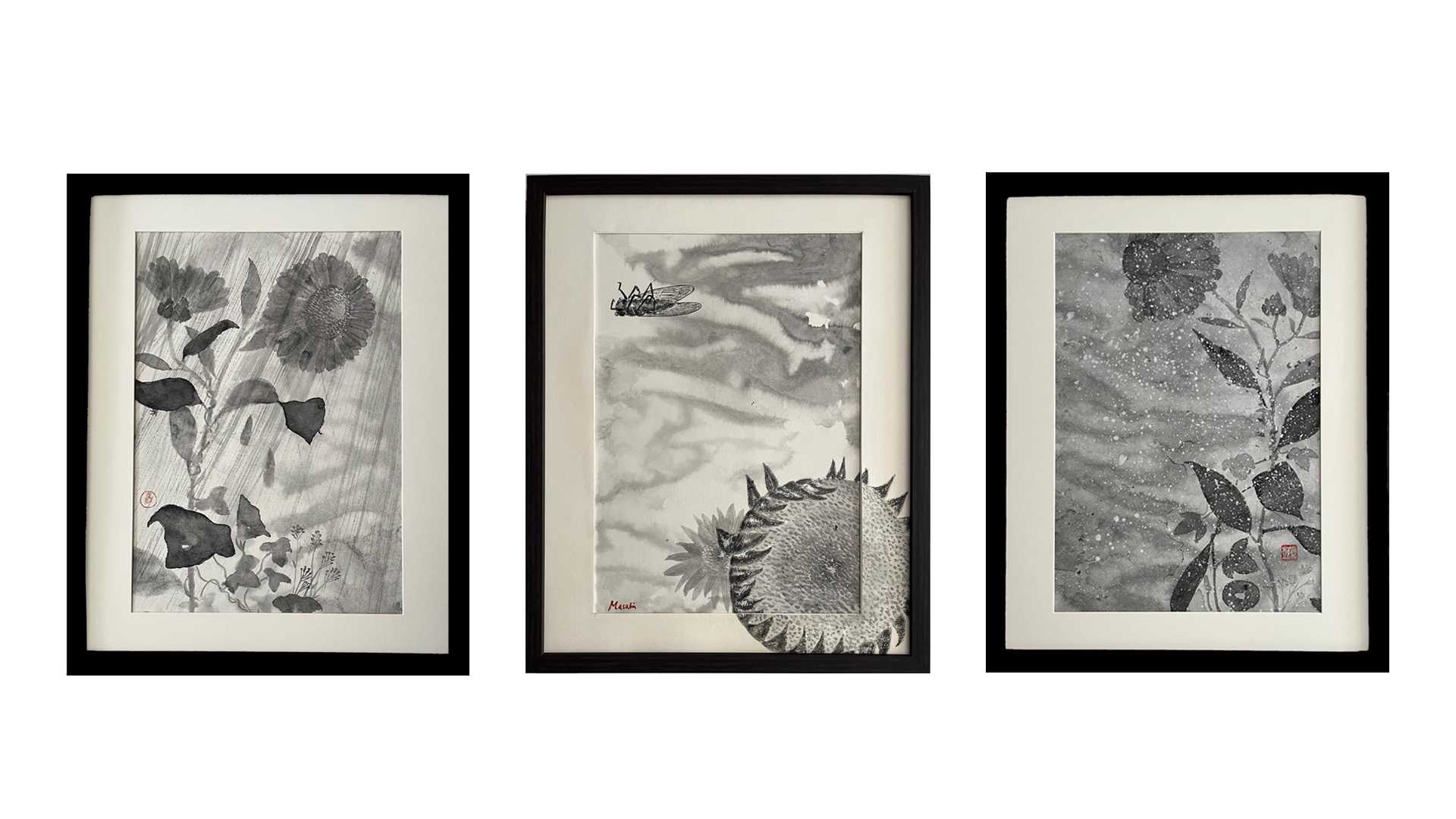 旅する蝶「アサギマダラ」の一生を4枚の連作で表現した。春の訪れとともに北へと旅立ち、夏には風に乗って仲間のいる場所へ、そして秋、伴侶とともに生まれ故郷を目指すが・・・