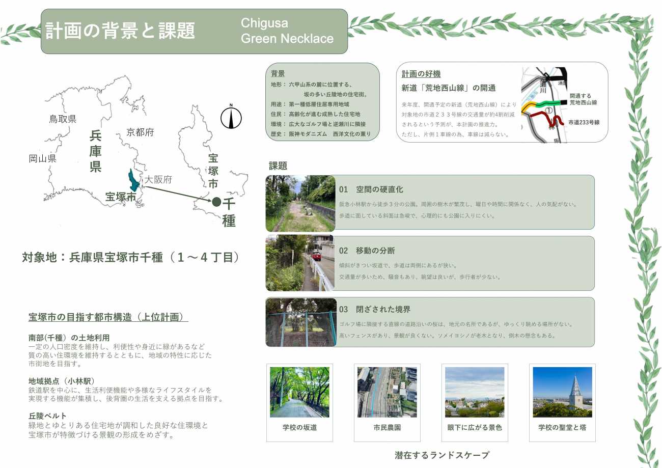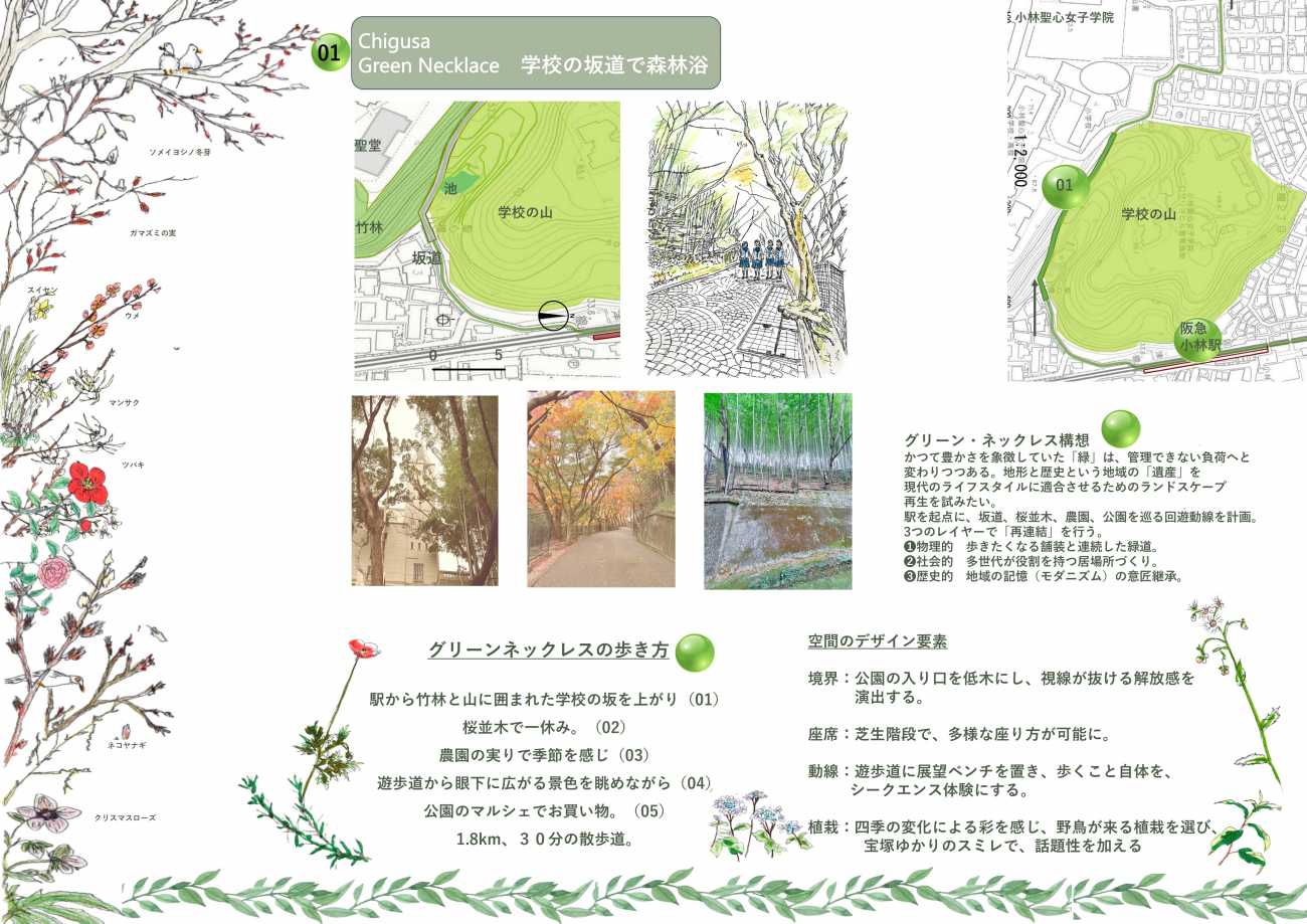Chigusa Green Necklace01 学校の坂道で森林浴・空間のデザイン要素・グリーンネックレスの歩き方
