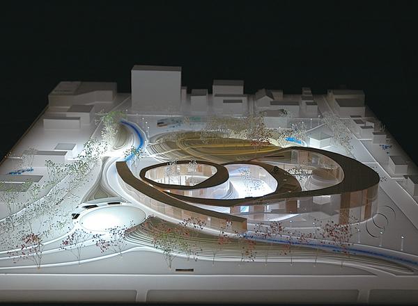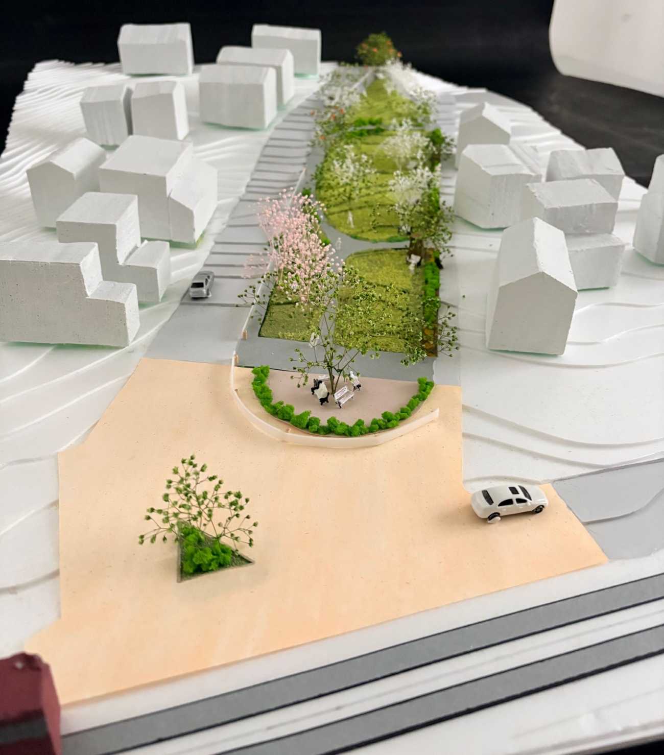 エリア05 ディテール:駅側からみた広場 模型(S=1:150)