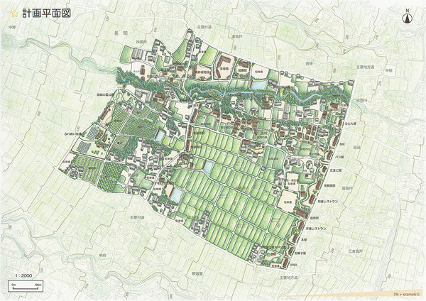 提案するのは、エリアをぐるりと巡る1.8kmの「グリーンネックレス」。 ゴルフ場の一部を春限定で開放し、点在する緑のスポットをネックレスのように繋ぐことで、エリア全体を巡れる「緑の回廊」としてデザインしました。