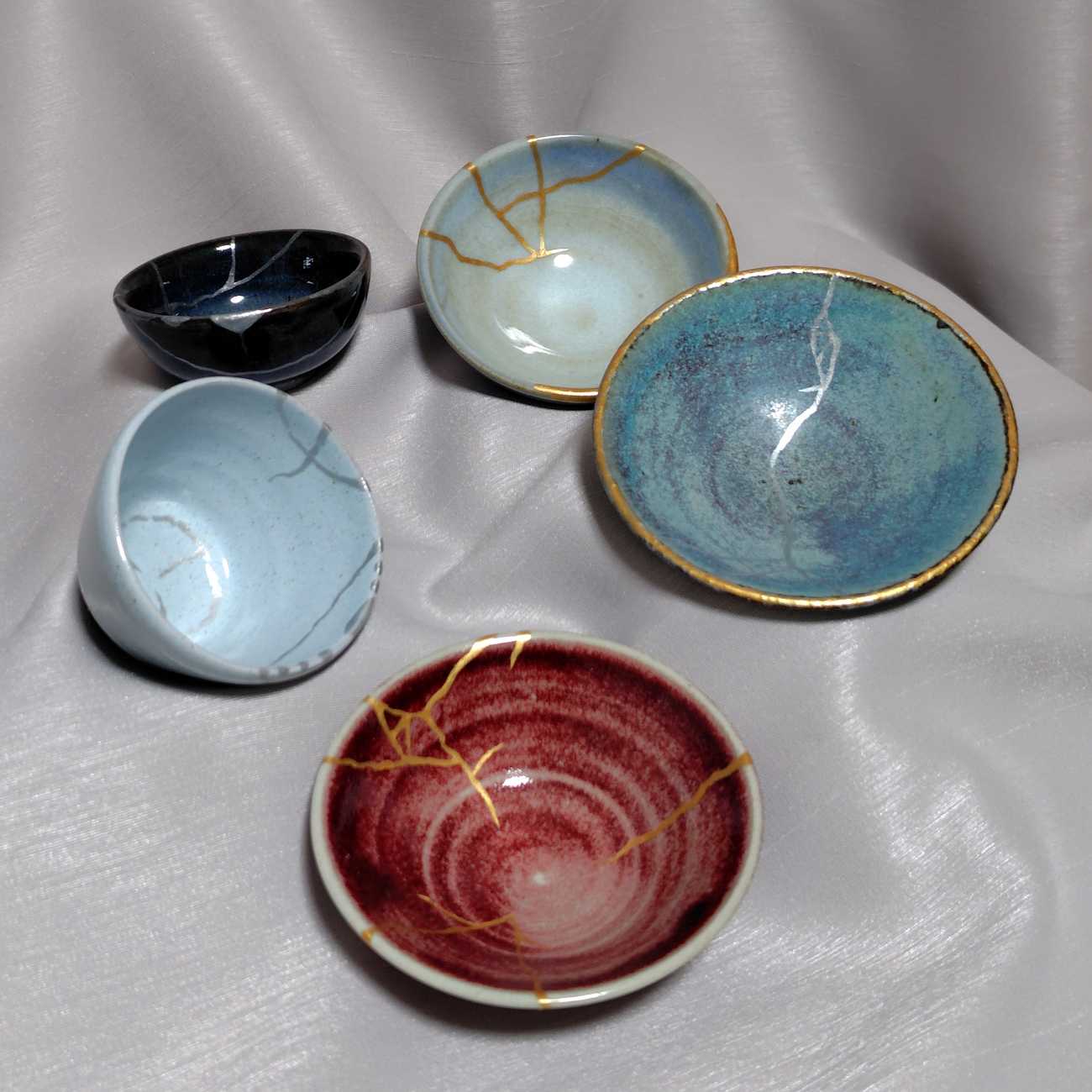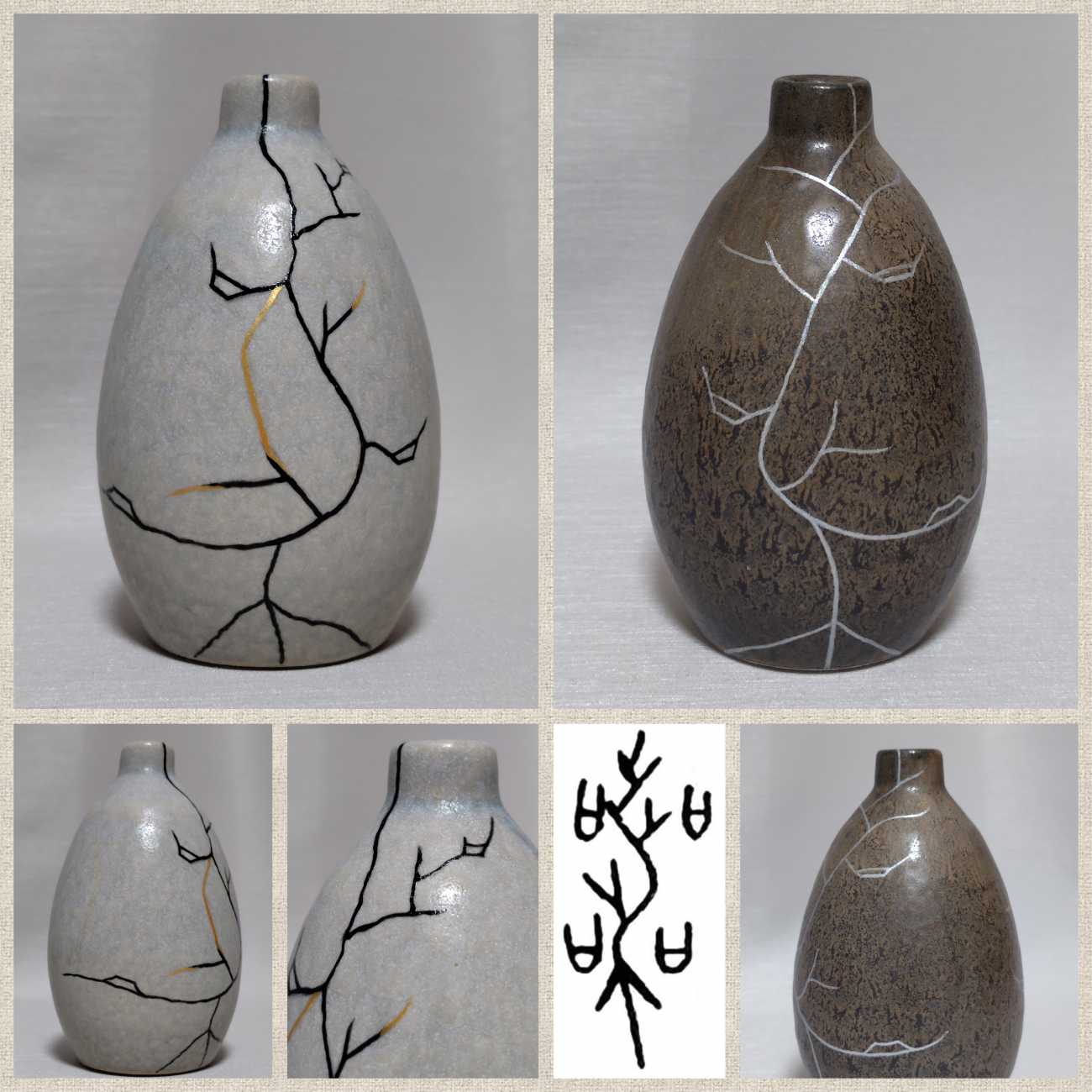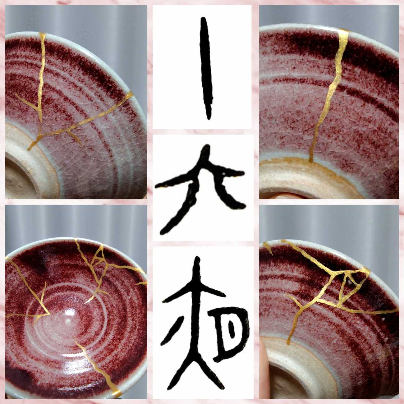 金継ぎの器の描線を模し、陶磁器用水性アクリル絵具を使用。