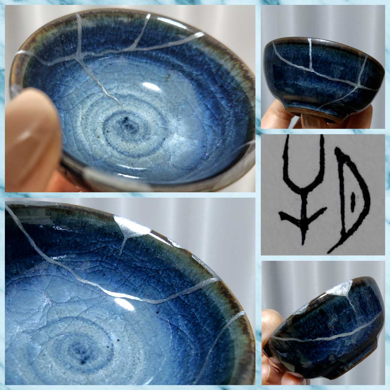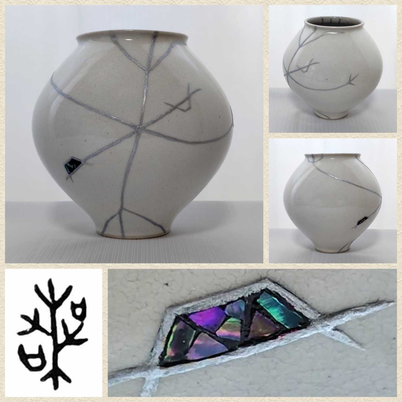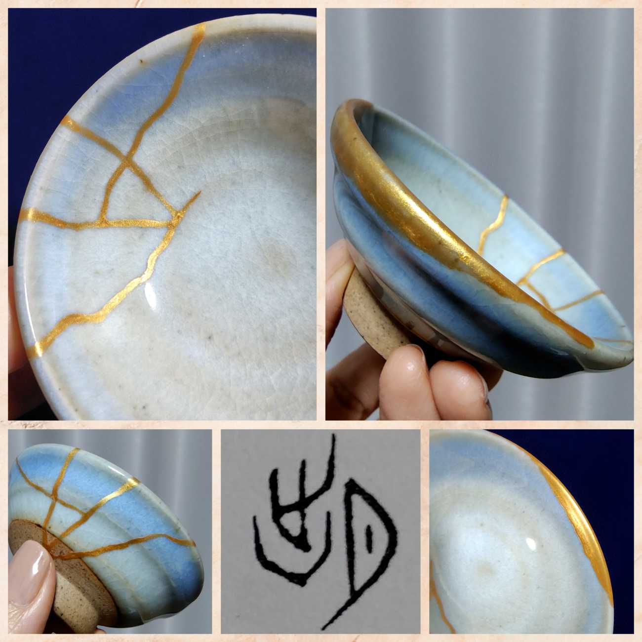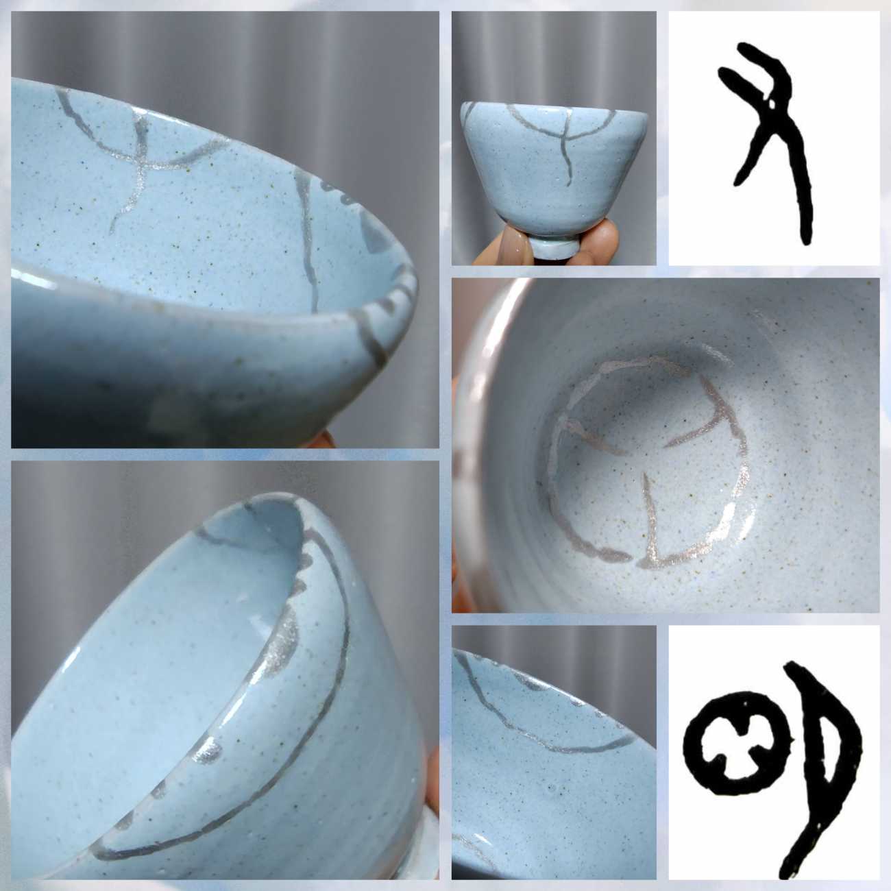 金継ぎの器の描線を模し、陶磁器用水性アクリル絵具を使用。